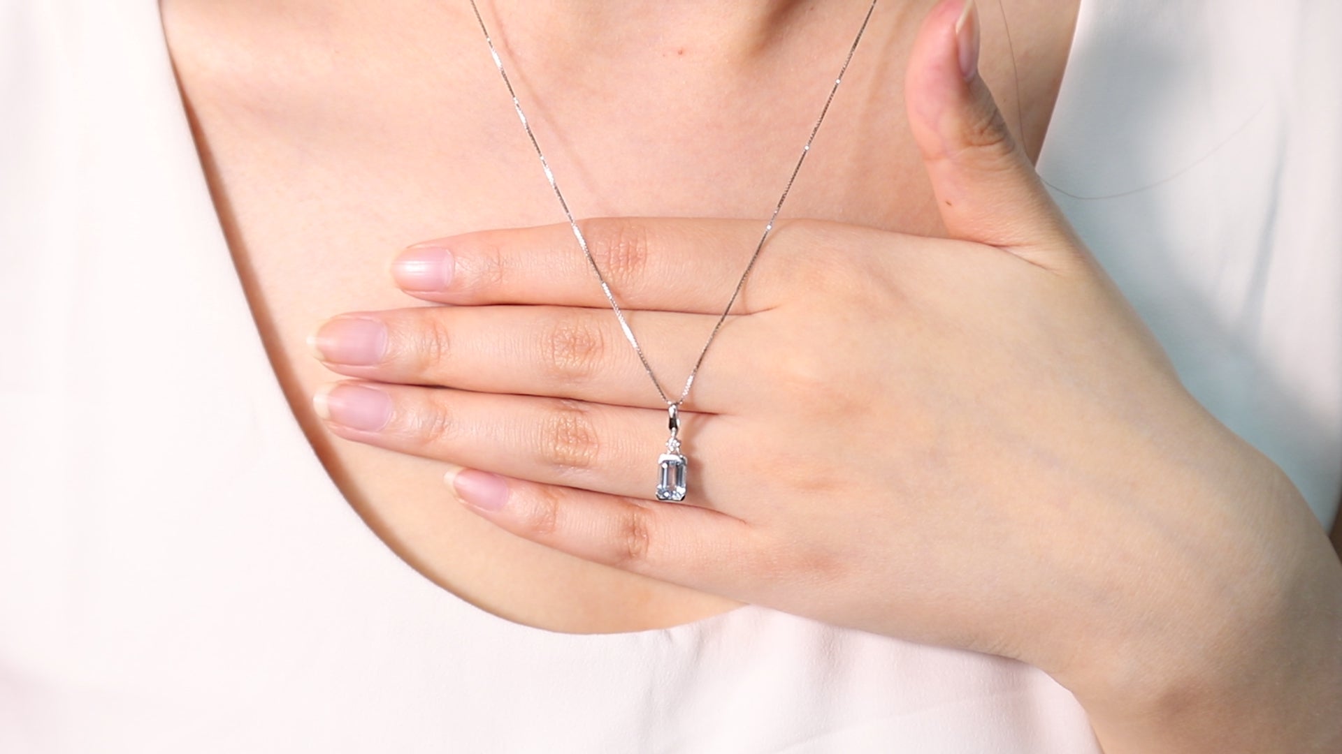 Eliza 14K White Gold Emerald-Cut Aquamarine Pendant