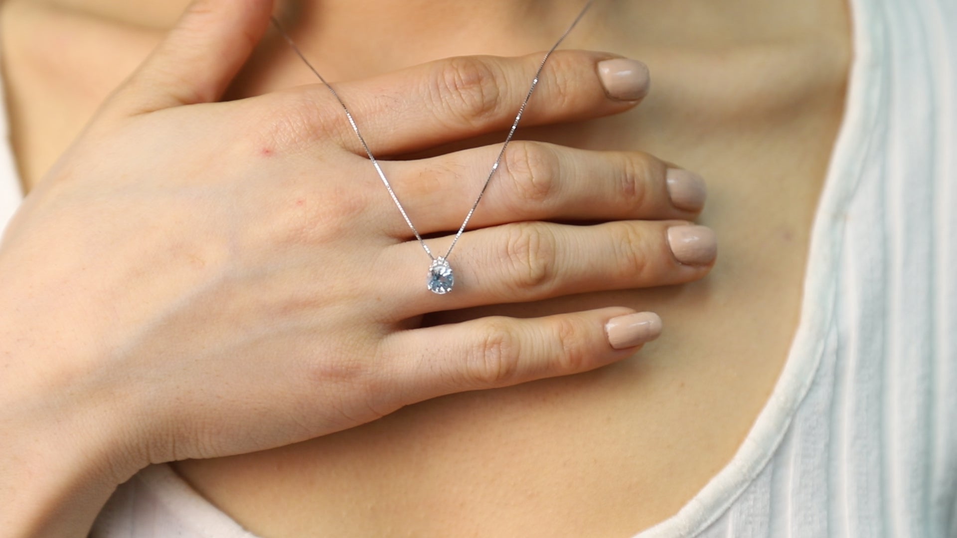 Alora 14K White Gold Round-Cut Brazilian Aquamarine Pendant