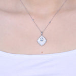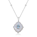 Decorate yourself in elegance with this Pendant is crafted from 14-karat White Gold by Gin & Grace Pendant. This Pendant is made up of Oval-Cut Prong setting Genuine Mother of Pearl (1 Pcs) 8.70 and Brazilian Aquamarine (1 Pcs) 0.75 Carat and Round-Cut Prong setting Natural White Diamond (22 Pcs) 0.17 Carat. This Pendant is weight 2.40 grams. The gorgeous Pendant hangs from a 18-inch wheat chain. This delicate Pendant is polished to a high finish shine.