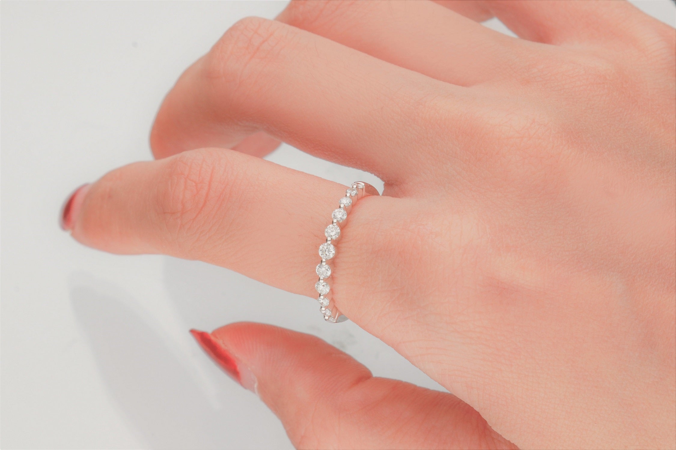 Stunning, timeless and classy eternity Unique ring. Keep your style in the forefront of your outfit with this perfect bauble The 14k White Gold of this ring is highly shiny and Natural diamond stones for a wonderful form Gin & Grace. The Jewellery Design boasts round-cut prong setting Natural White diamond (11pcs) 0.40 carat accent stones for a lovely design. This ring is weight 2.24 grams. Natural Diamonds with good quality I1-I2.One of a kind.Â