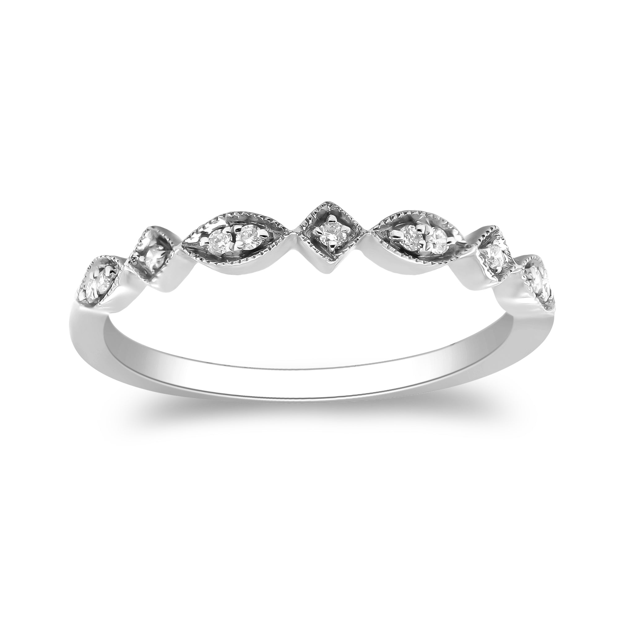 Decorate yourself in elegance with this Ring is crafted from 14-karat White Gold by Gin & Grace Ring. This Ring is made up of Round-Cut White Diamond (11 Pcs) 0.08 Carat. This Ring is weight 1.62 grams. This delicate Ring is polished to a high finish shine.