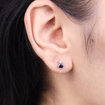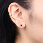 Decorate yourself in elegance with this Earring crafted from 10-karat White Gold by Gin & Grace. This Earring is made up of 4.0 mm Round-cut Ceylon Blue Sapphire (2 pcs) 0.71 carat and Round-cut White Diamond (2 Pcs) 0.05 Carat. This Earring weighs 0.84 grams. This delicate Earring is polished to a high finish shine.