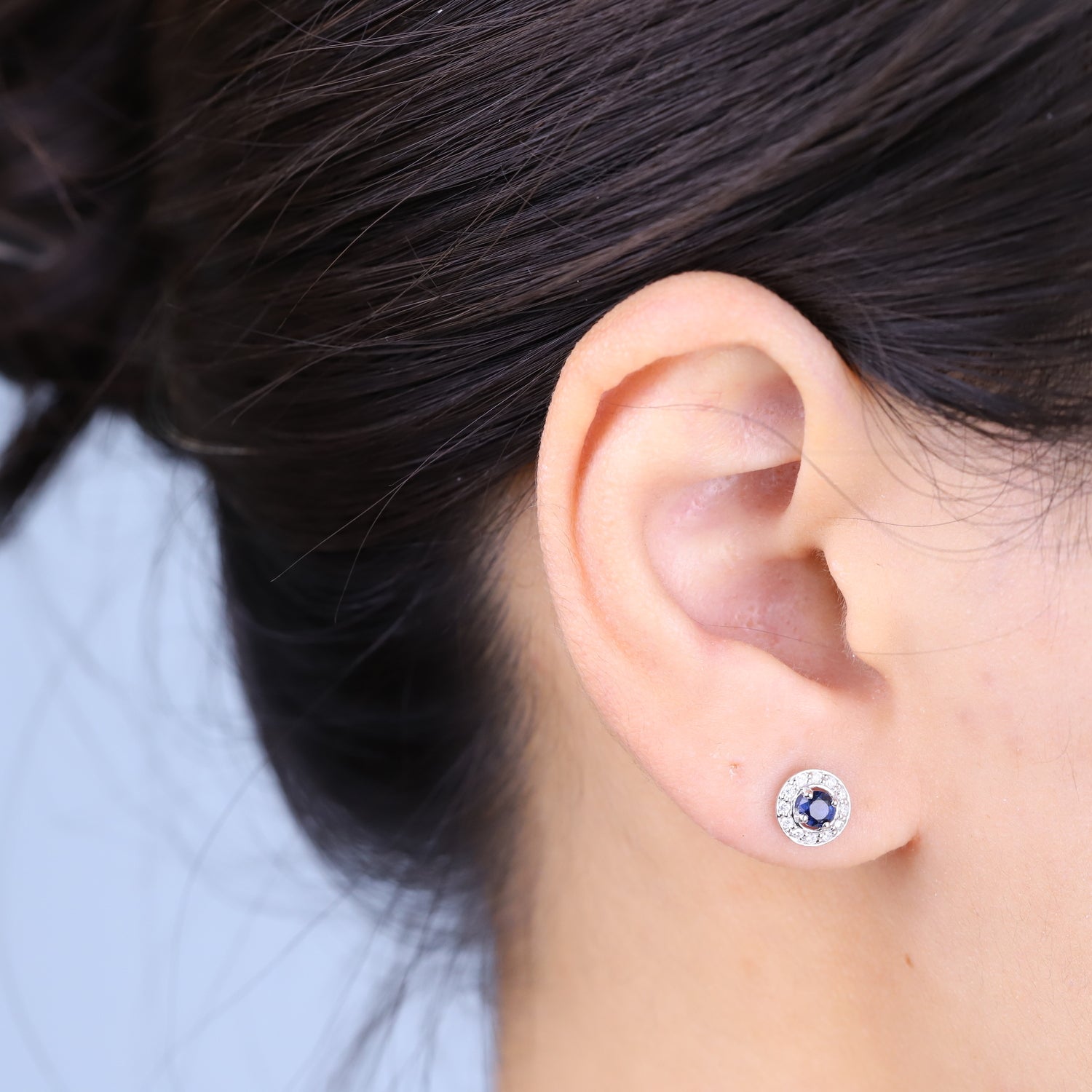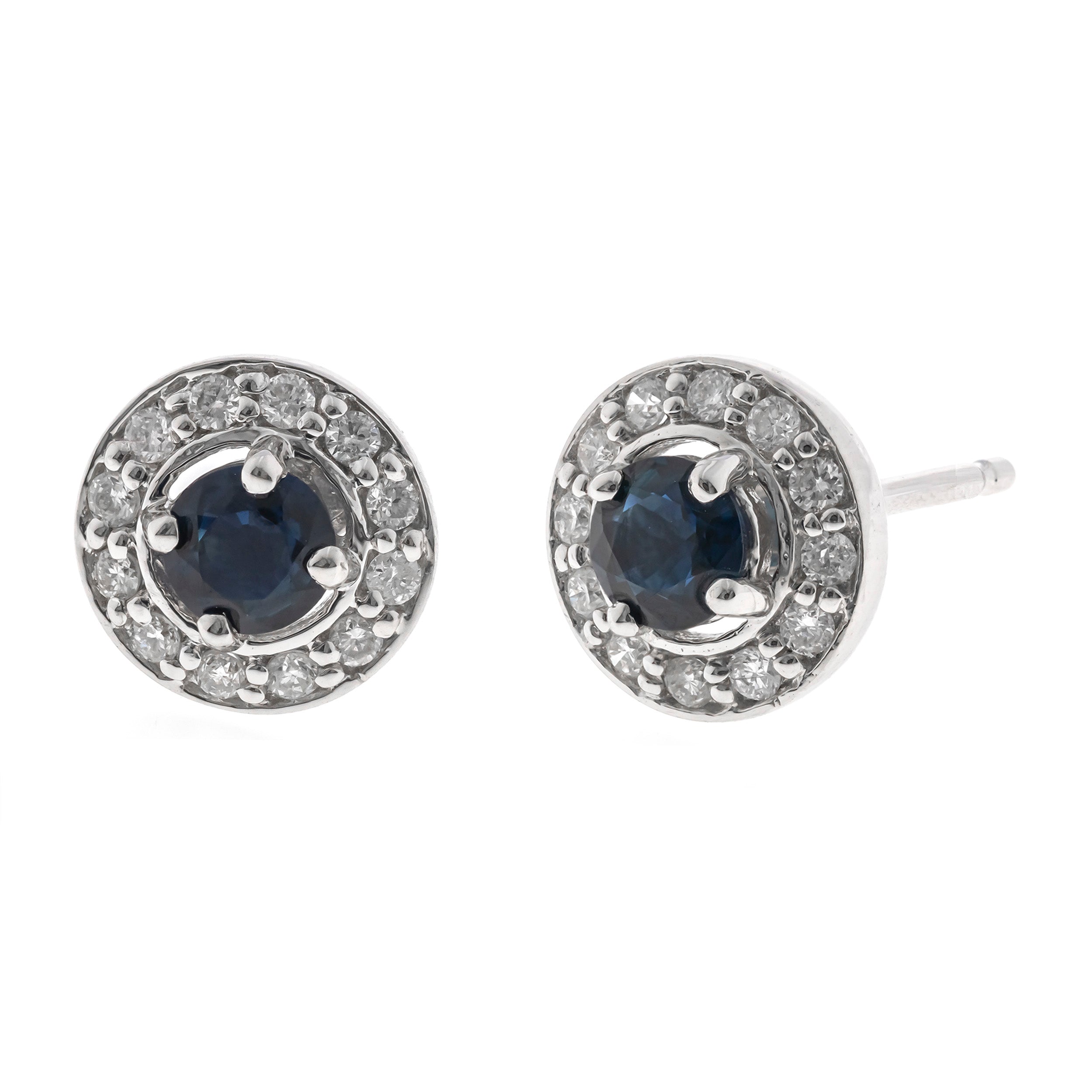 Delilah 10K White Gold Round-Cut Blue Sapphire Earrings