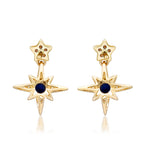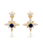 Decorate yourself in elegance with this Earring crafted from 10K Yellow Gold by Gin & Grace. This Earring is made up of Blue Sapphire Round-Cut (2 pcs) 0.23 carat and Round-cut White Diamond (26 Pcs) 0.17 Carat. This Earring weighs 1.59 grams. This delicate Earring is polished to a high finish shine.