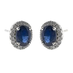 Stunning, timeless and classy eternity Unique Earring. Decorate yourself in luxury with this Gin & Grace Earring. The 10K White Gold jewelry boasts Oval-Cut Prong Setting Ceylon Blue Sapphire (2 pcs) 1.92 Carat, along with Natural Round cut white Diamond (36 Pcs) 0.28 Carat, accent stones for a lovely design. This Earring is weight 1.99 grams. Crafted with 10K White Gold, this delicate Earring is polished to a high finish shine.