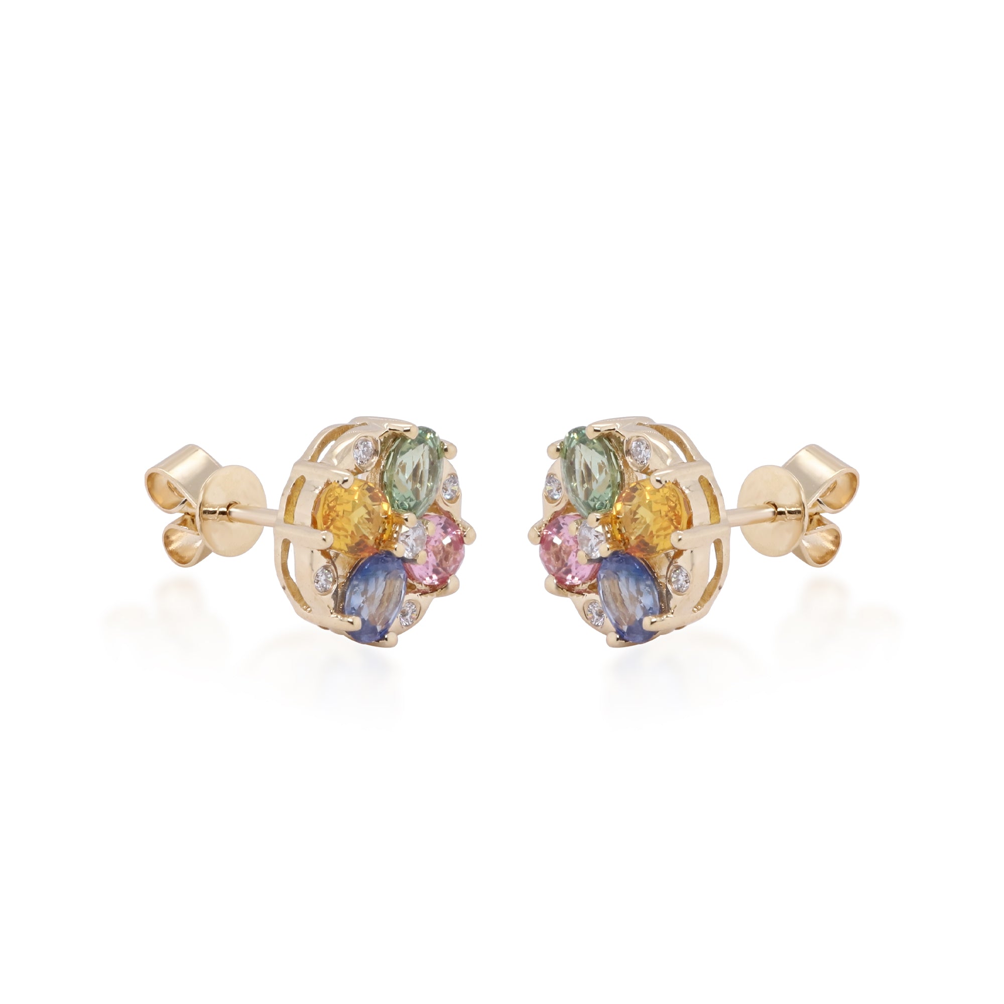 Decorate yourself in elegance with this Earring is crafted from 10-karat Yellow Gold by Gin & Grace. This Earring is made up of 3*4MM Oval-cut Multi Sapphire (8 Pcs) 1.90 carat and Round-cut white Diamond (10 Pcs) 0.09 Carat. This Earring is weight 2.03 grams. This delicate Earring is polished to a high finish shine.