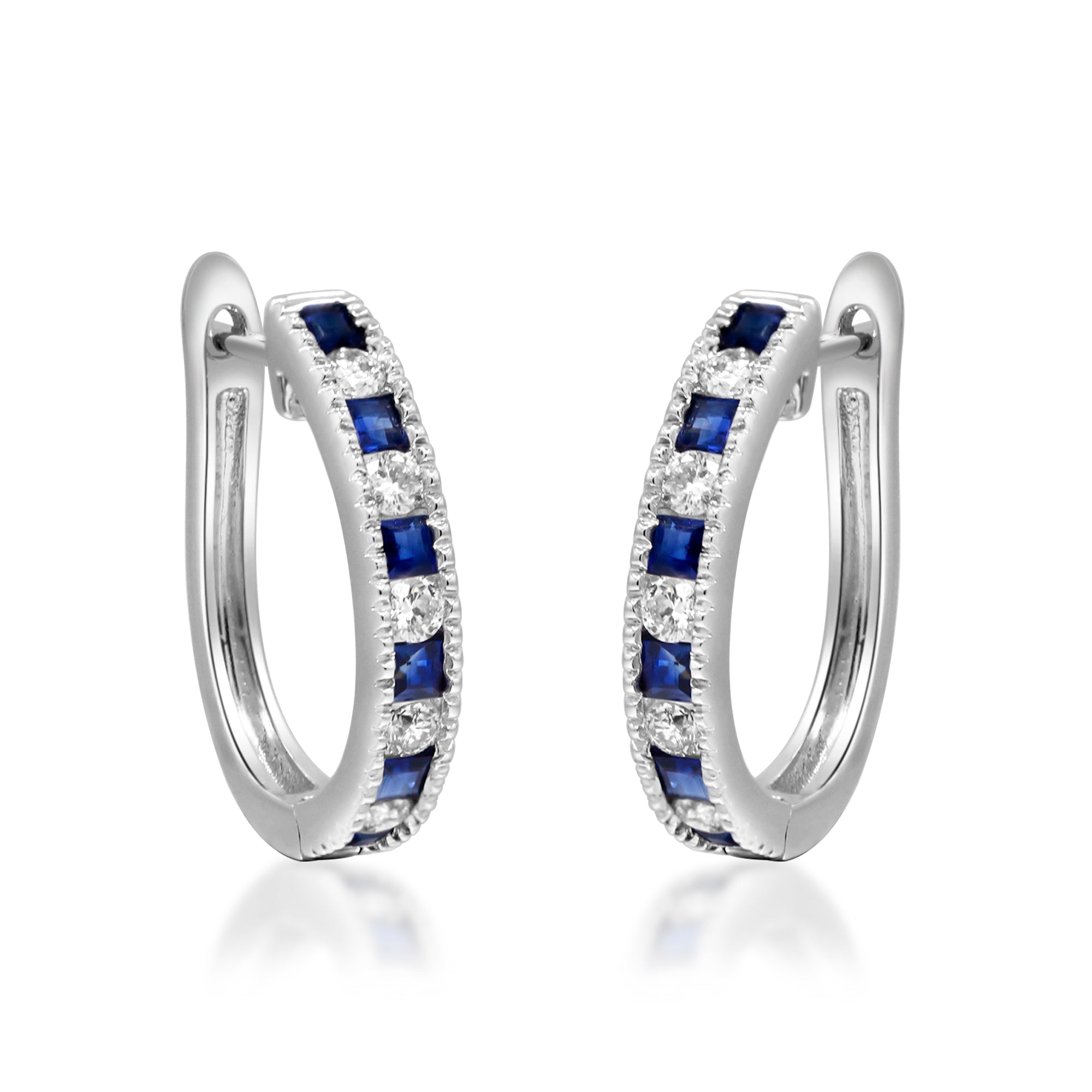 Stunning, timeless and classy eternity Unique Earring. Decorate yourself in luxury with this Gin & Grace Earring. The 14K White Gold jewelry boasts Square-Cut Prong Setting Genuine Ceylon Blue Sapphire (12 pcs) 0.64 Carat, along with Natural Round cut white Diamond (10 Pcs) 0.31 Carat, accent stones for a lovely design. This Earring is weight 2.99 grams. Crafted with 14K White Gold, this delicate Earring is polished to a high finish shine.