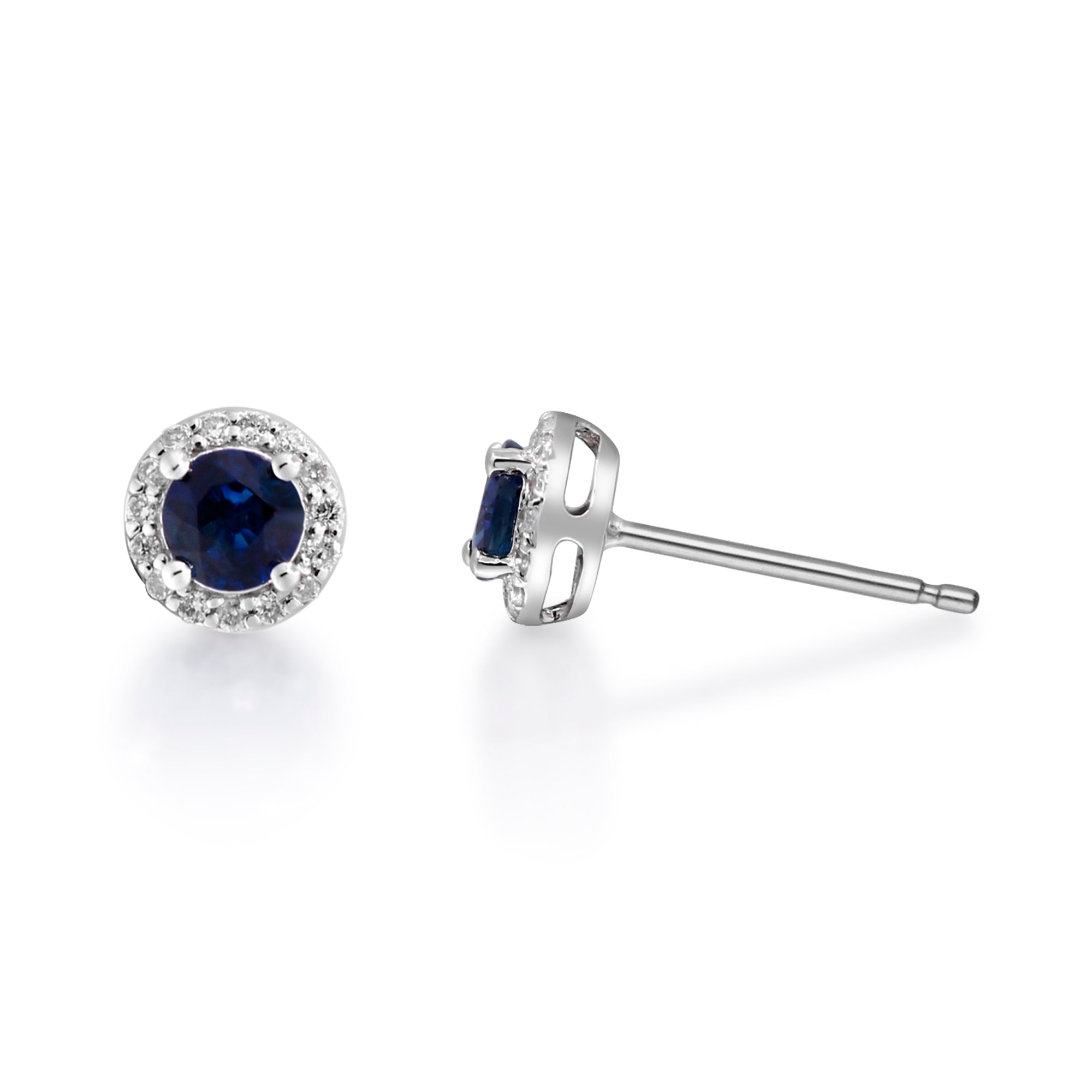 Decorate yourself in elegance with this Earring is crafted from 14-karat White Gold by Gin & Grace Earring. This Earring is made up of 4.0 mm Round-Cut Ceylon Blue Sapphire (2 pcs) 0.73 carat and Round-cut White Diamond (30 Pcs) 0.11 Carat. This Earring is weight 1.11 grams. This delicate Earring is polished to a high finish shine.