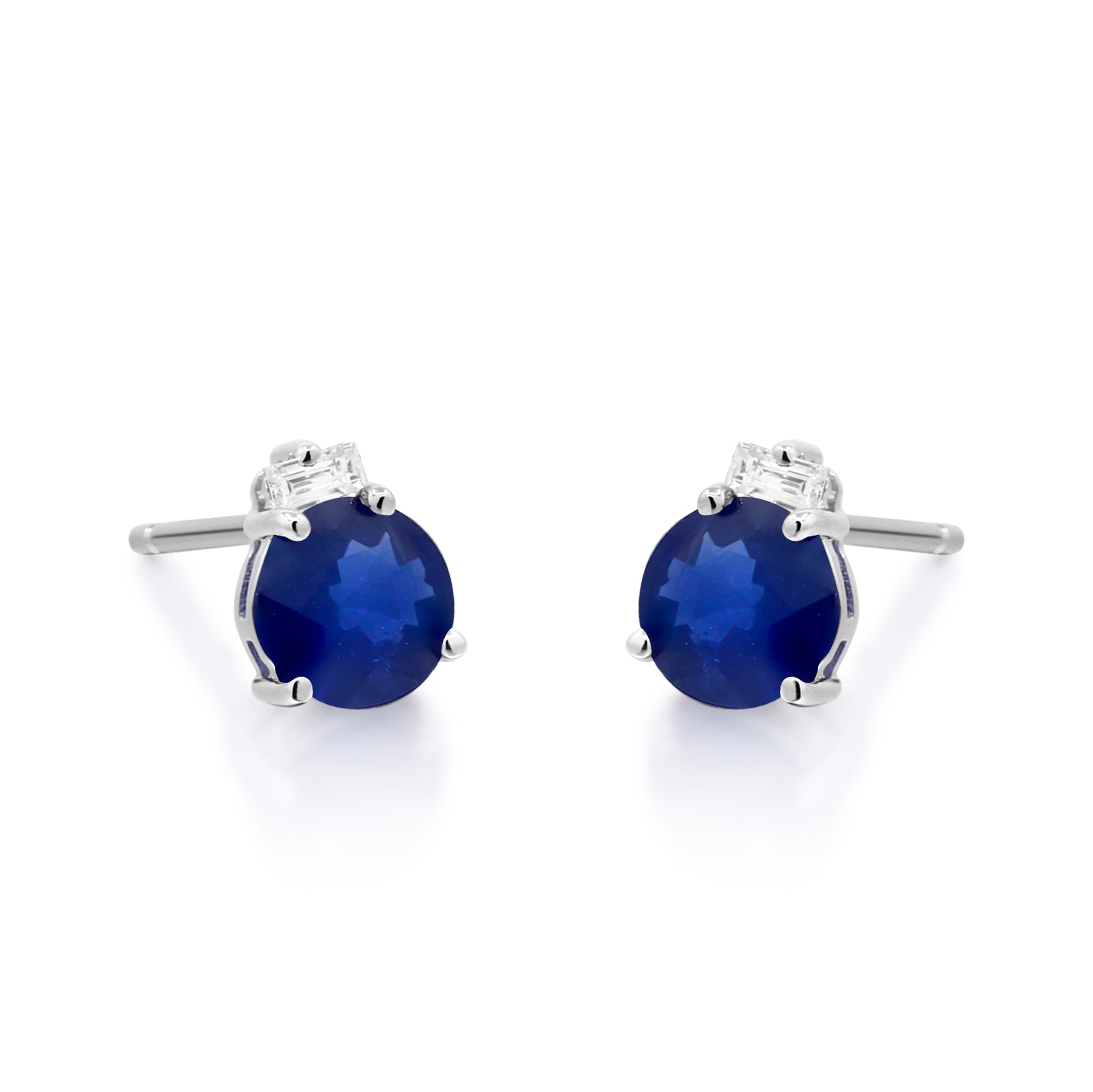 Decorate yourself in elegance with this Earring is crafted from 10-karat White Gold by Gin & Grace Earring. This Earring is made up of 5.0 mm Round-Cut Ceylon Blue Sapphire (2 pcs) 1.13 carat and Round-cut White Diamond (2 Pcs) 0.08 Carat. This Earring is weight 0.74 grams. This delicate Earring is polished to a high finish shine.