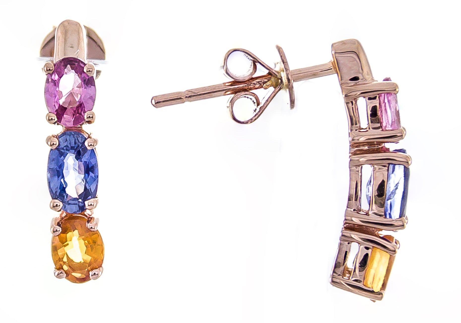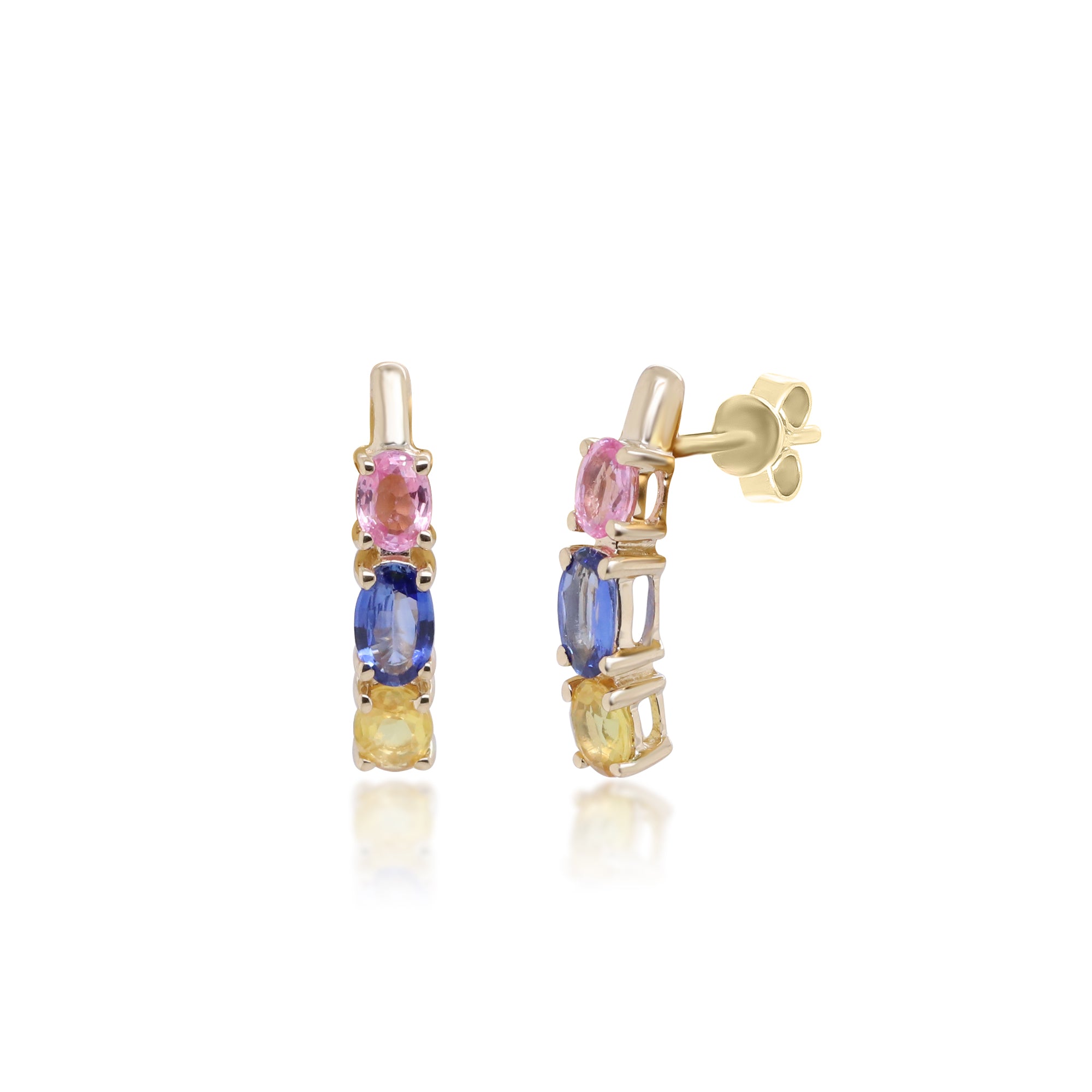 Decorate yourself in elegance with this Earring is crafted from 10K Yellow Gold by Gin & Grace. This Earring is made up of 3*5 mm Oval-Cut Multi Sapphire (2 Pcs) 0.54 carat and 3*4 Oval cut Multi Sapphire (4Pcs) 0.82 Carat. This Earring is weight 1.38 grams. This delicate Earring is polished to a high finish shine.