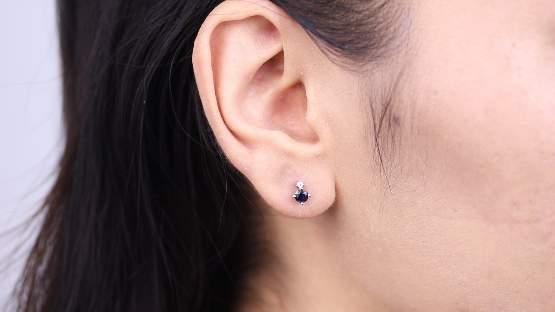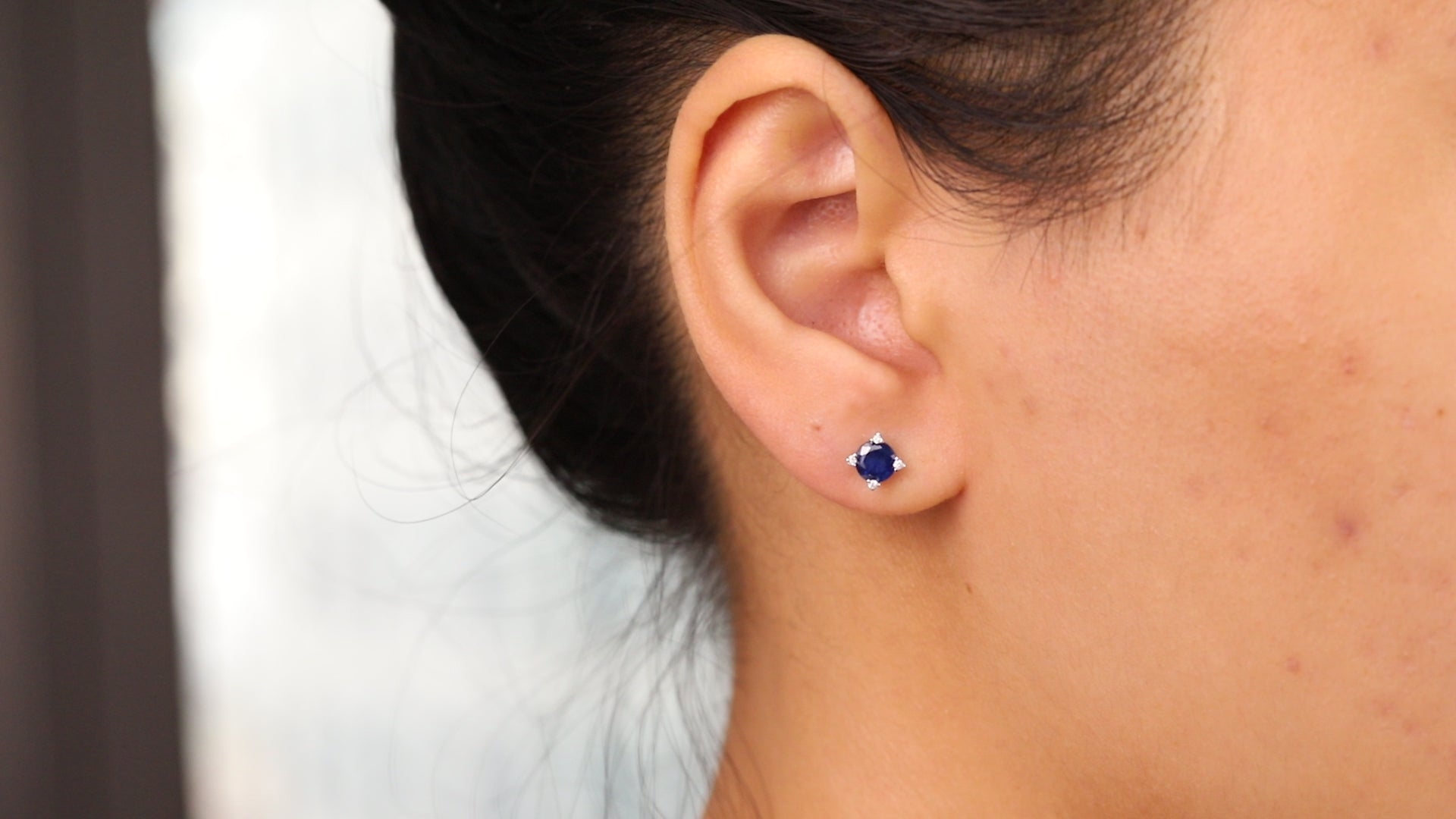 Billie 14K White Gold Round-Cut Ceylon Blue Sapphire Earring