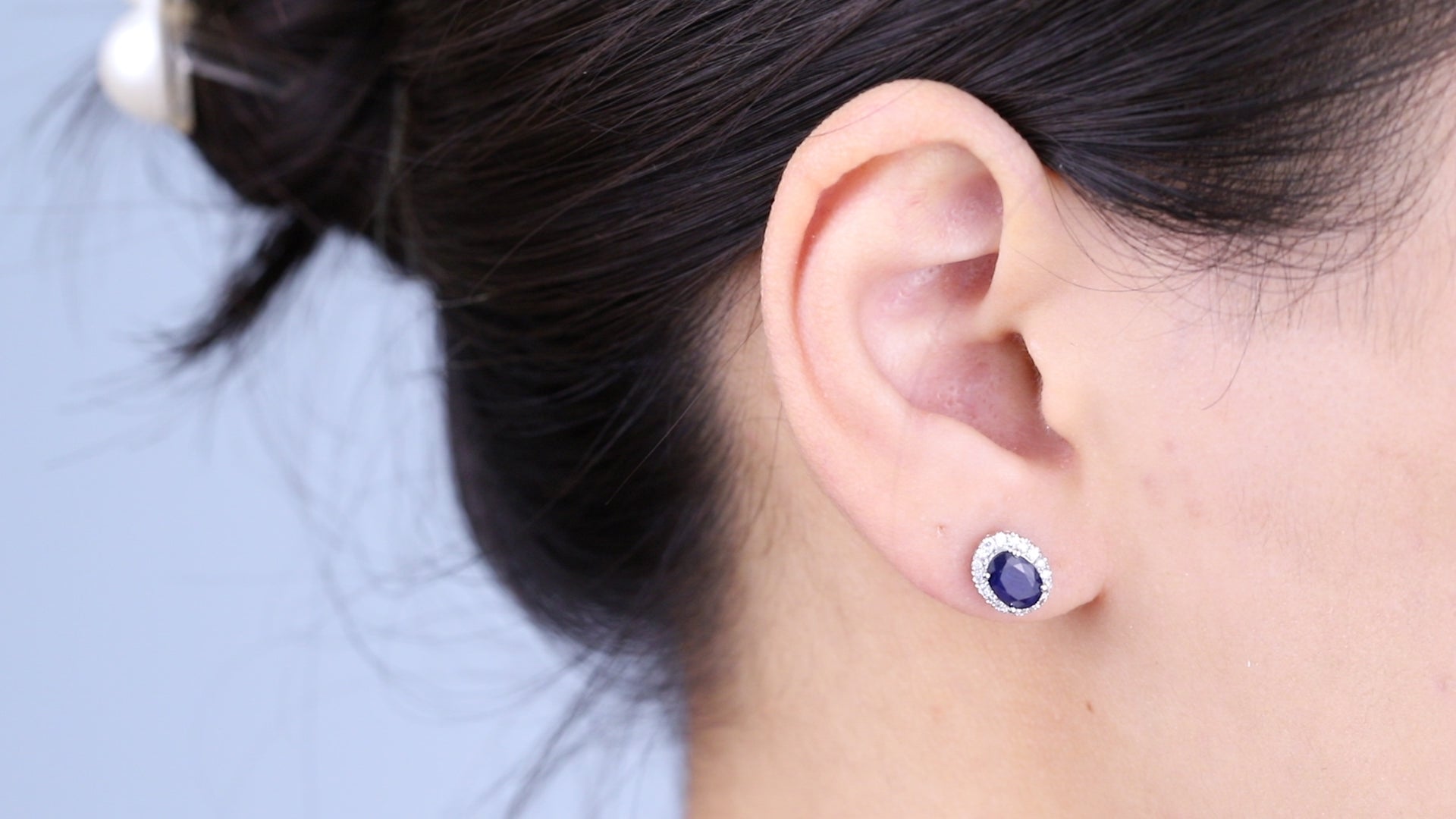 Harlee 14K White Gold Oval-Cut Ceylon Blue Sapphire Earring