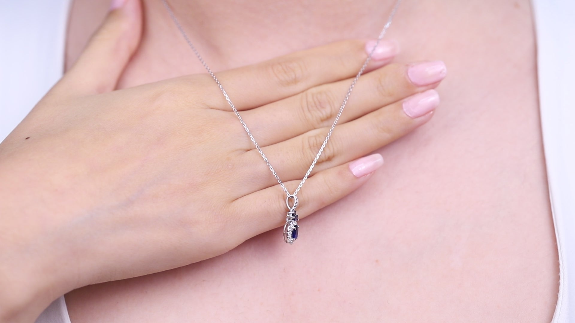 Piper 10K White Gold Pear-Cut Blue Sapphire Pendant
