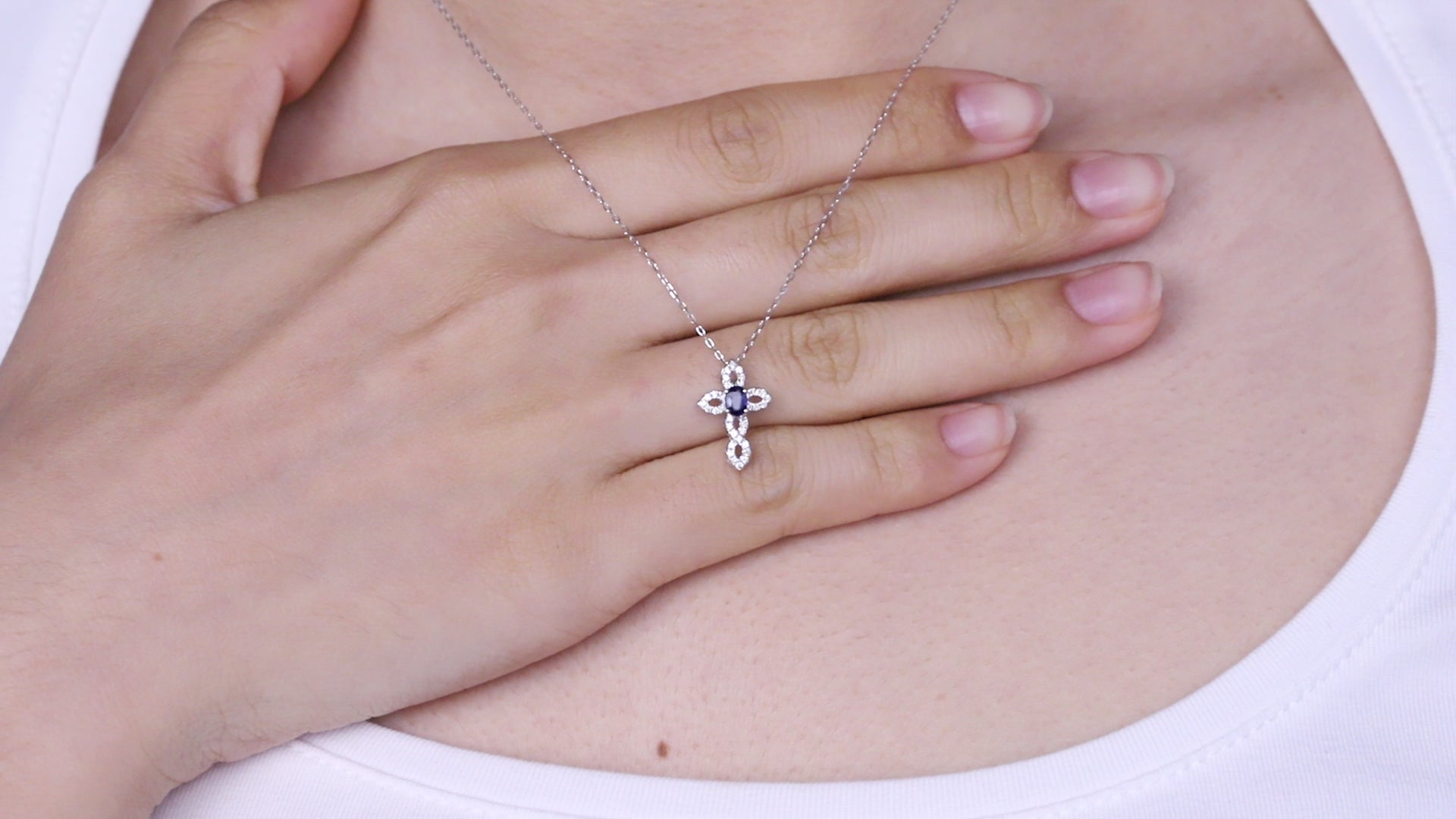 Cora 14K White Gold Oval-Cut Ceylon Blue Sapphire Pendant