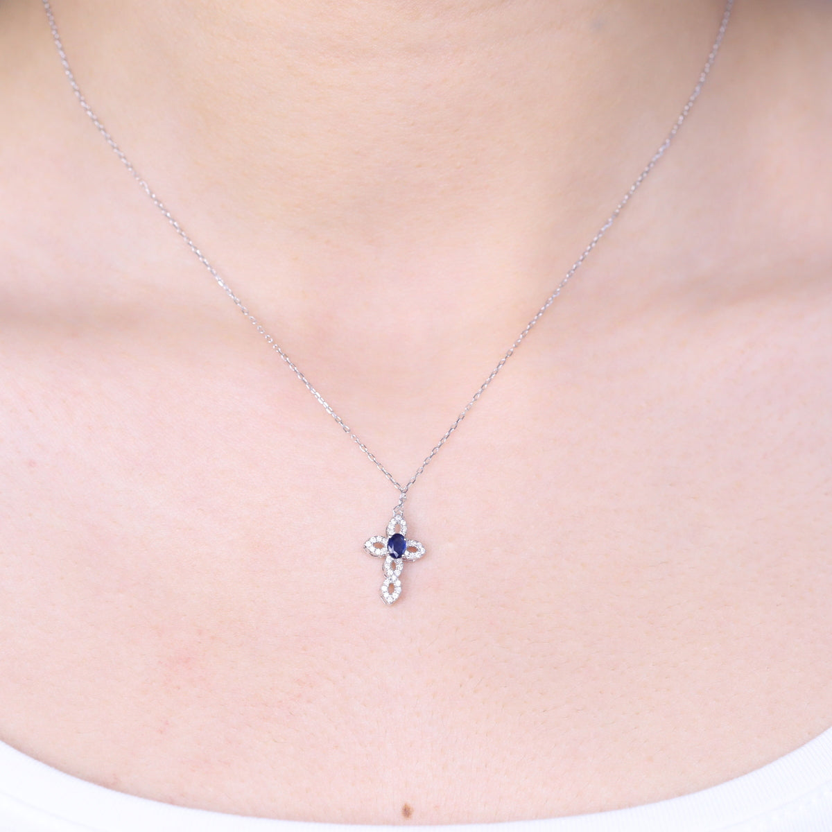 Molly 14K White Gold Oval-Cut Ceylon Blue Sapphire Pendant