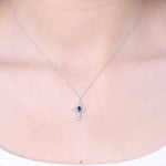 Decorate yourself in elegance with this Pendant is crafted from 14-karat White Gold by Gin & Grace. This Pendant is made up of Oval Ceylon Blue Sapphire (1 pcs) 0.21 carat and Round-cut White Diamond (35 Pcs) 0.13 Carat. This Pendant is weight 1.77 grams. This delicate Pendant is polished to a high finish shine.