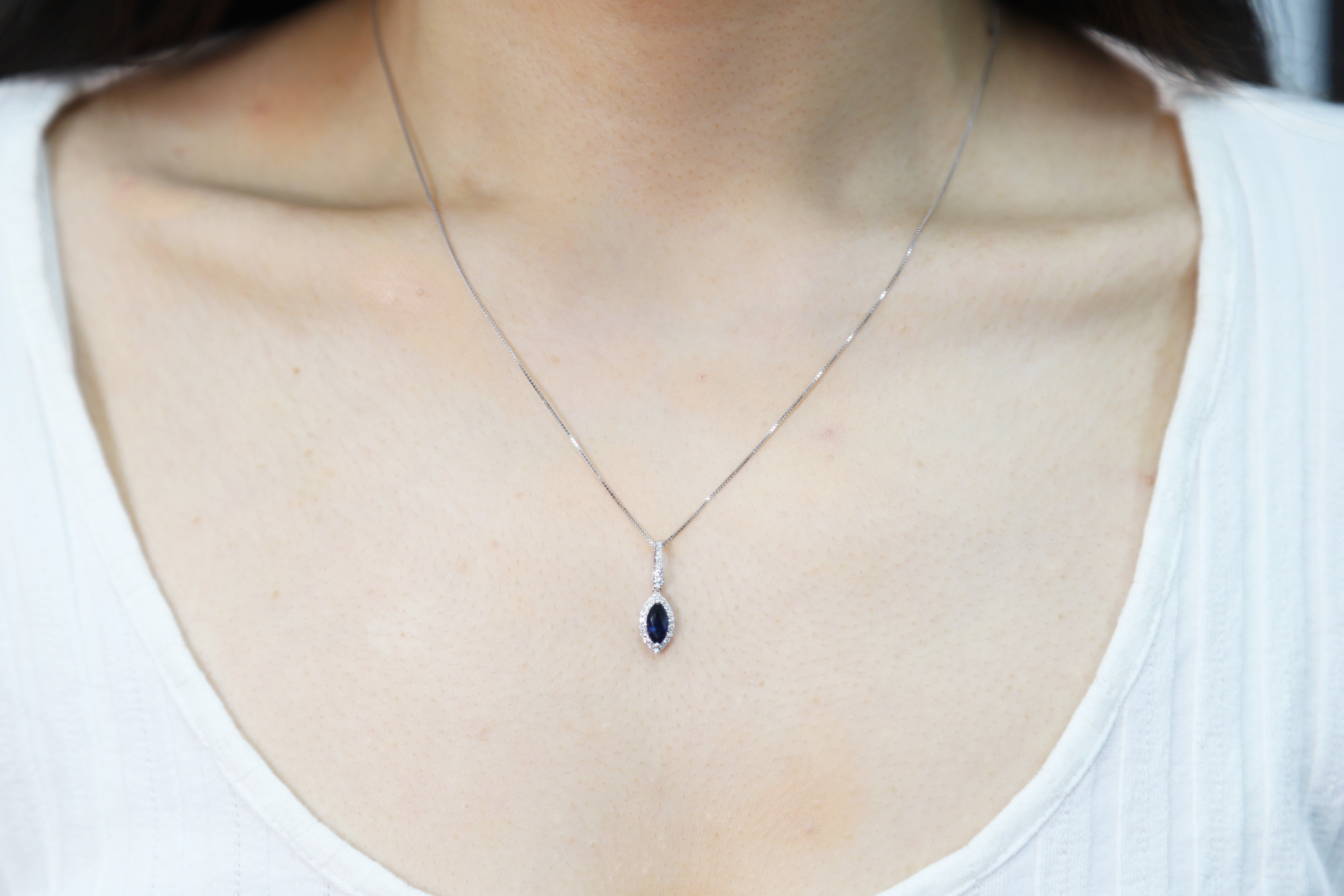 Valeria 10K White Gold Marquise-Cut Blue Sapphire Pendant