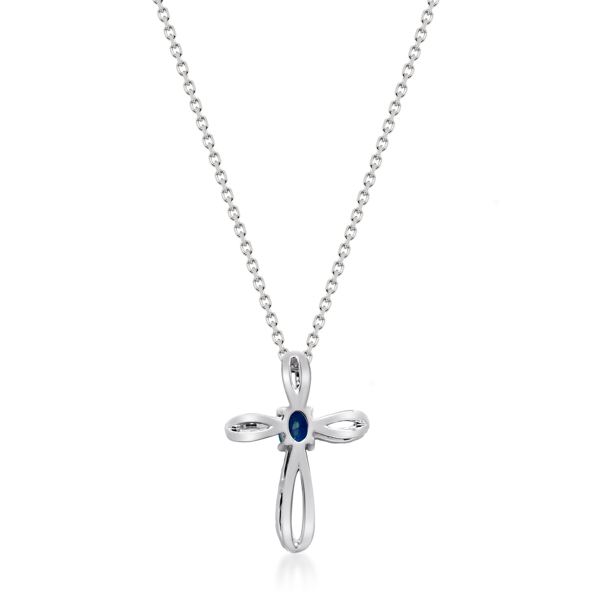 Decorate yourself in elegance with this Pendant is crafted from 10-karat White Gold by Gin & Grace. This Pendant is made up of Oval-Cut Blue Sapphire (1 pcs) 0.21 carat and Round-cut White Diamond (19 Pcs) 0.09 Carat. This Pendant is weight 0.69 grams. This delicate Pendant is polished to a high finish shine.