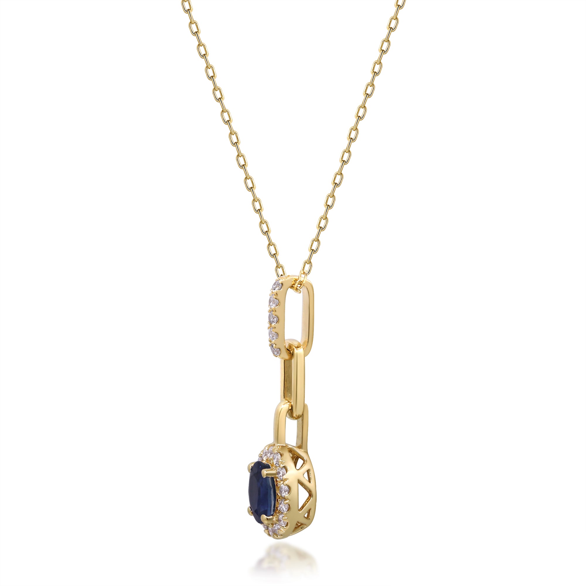 Decorate yourself in elegance with this Pendant crafted from 14K Yellow Gold by Gin & Grace. This Pendant is made up of Ceylon Blue Sapphire Oval-cut (1 pcs) 0.53 and Round-cut White Diamond (21 Pcs) 0.15 Carat. This Pendant weigh 1.82 grams. This delicate Pendant is polished to a high finish shine.