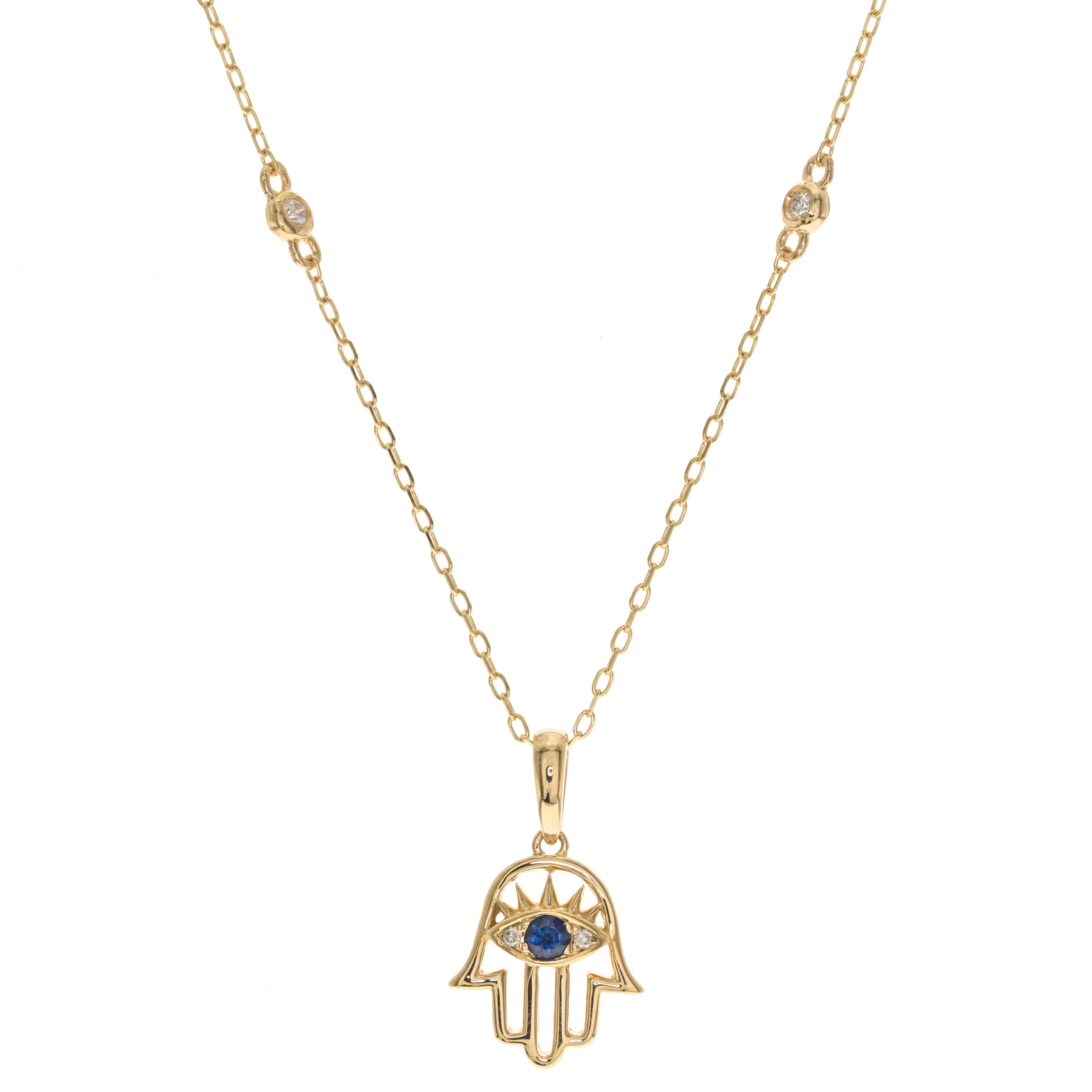 Decorate yourself in elegance with this Pendant crafted from 14K Yellow Gold by Gin & Grace. This Pendant is made up of Ceylon Blue Sapphire Round-cut (1 pcs) 0.04 and Round-cut White Diamond (4 Pcs) 0.03 Carat. This Pendant weigh 2.02 grams. This delicate Pendant is polished to a high finish shine.