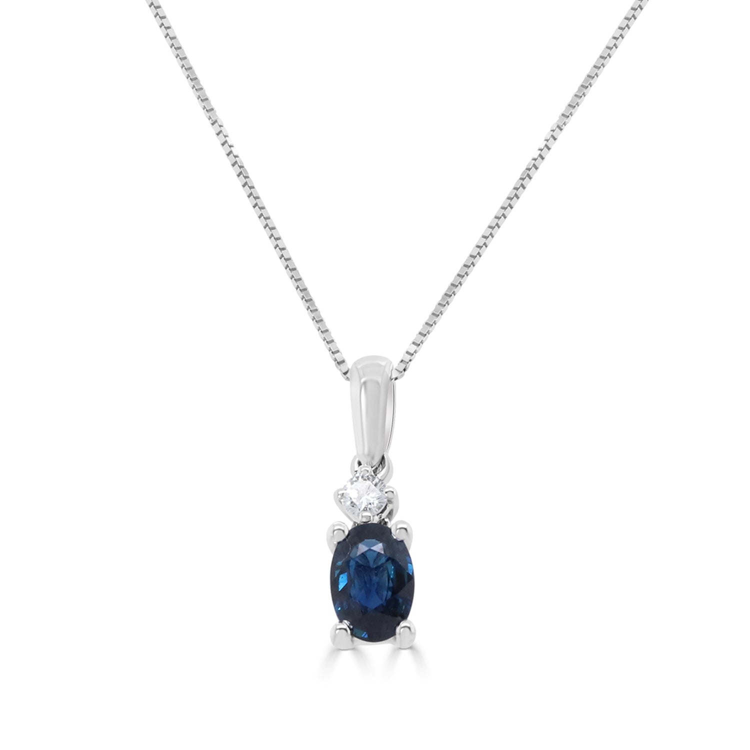 Perfect for your jewelry collection, the pendant showcases an ornate design by The Loupe Club. This Pendant is made up of 10K White gold is polished and showcases ideal Oval-Cut Natural Ceylon Blue Sapphire gemstones (1 Pc) 0.59 Carat and Round-Cut Prong Setting Diamond (1 Pcs) 0.05 Carat accent stones for a lovely design. This Pendant is weight 0.64 grams. The Pendant is crafted of shining 10-karat White Gold and is completed by a highly polished finish.