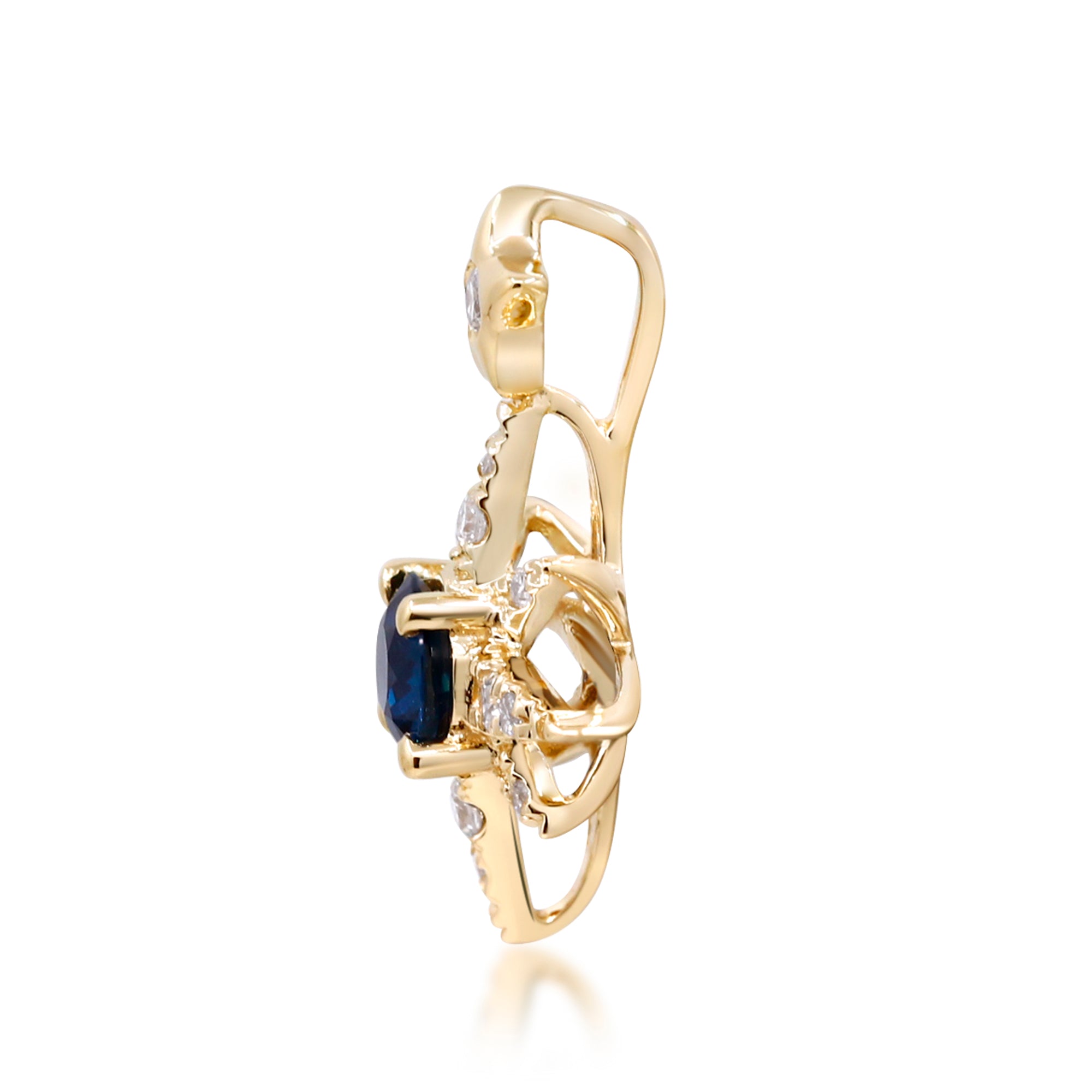 Decorate yourself in elegance with this Pendant crafted from 14-karat Yellow Gold by Gin & Grace. This Pendant is made up of 4.0 mm Ceylon Blue Sapphire Round-cut (1 pcs) 0.32 and Round-cut White Diamond (13 Pcs) 0.09 Carat. This Pendant weigh 0.83 grams. This delicate Pendant is polished to a high finish shine.