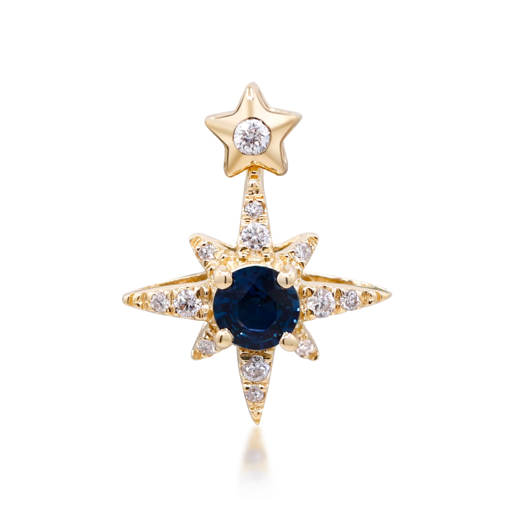 Decorate yourself in elegance with this Pendant crafted from 14-karat Yellow Gold by Gin & Grace. This Pendant is made up of 4.0 mm Ceylon Blue Sapphire Round-cut (1 pcs) 0.32 and Round-cut White Diamond (13 Pcs) 0.09 Carat. This Pendant weigh 0.83 grams. This delicate Pendant is polished to a high finish shine.