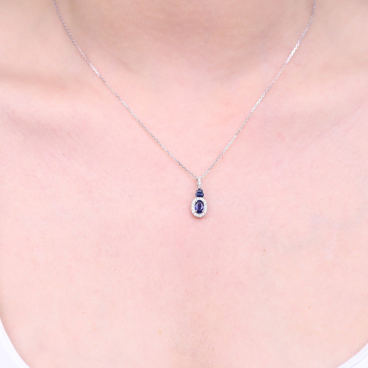 Stephanie 10K White Gold Oval-Cut Ceylon Blue Sapphire Pendant