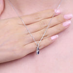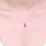 Decorate yourself in elegance with this Pendant is crafted from 10-karat White Gold by Gin & Grace Pendant. This Pendant is made up of 6x4 mm Oval-Cut Ceylon Blue Sapphire (1Pcs) 0.54 Carat, 3.5x2 mm Baguette-cut Blue Sapphire (2 Pcs) 0.17 Carat and Round-cut White Diamond (20 Pcs) 0.13 Carat. This Pendant is weight 1.17 grams. This delicate Pendant is polished to a high finish shine.