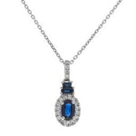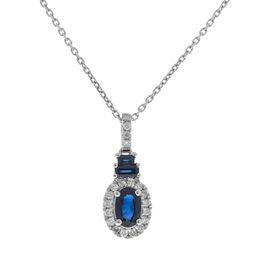 Decorate yourself in elegance with this Pendant is crafted from 10-karat White Gold by Gin & Grace Pendant. This Pendant is made up of 6x4 mm Oval-Cut Ceylon Blue Sapphire (1Pcs) 0.54 Carat, 3.5x2 mm Baguette-cut Blue Sapphire (2 Pcs) 0.17 Carat and Round-cut White Diamond (20 Pcs) 0.13 Carat. This Pendant is weight 1.17 grams. This delicate Pendant is polished to a high finish shine.