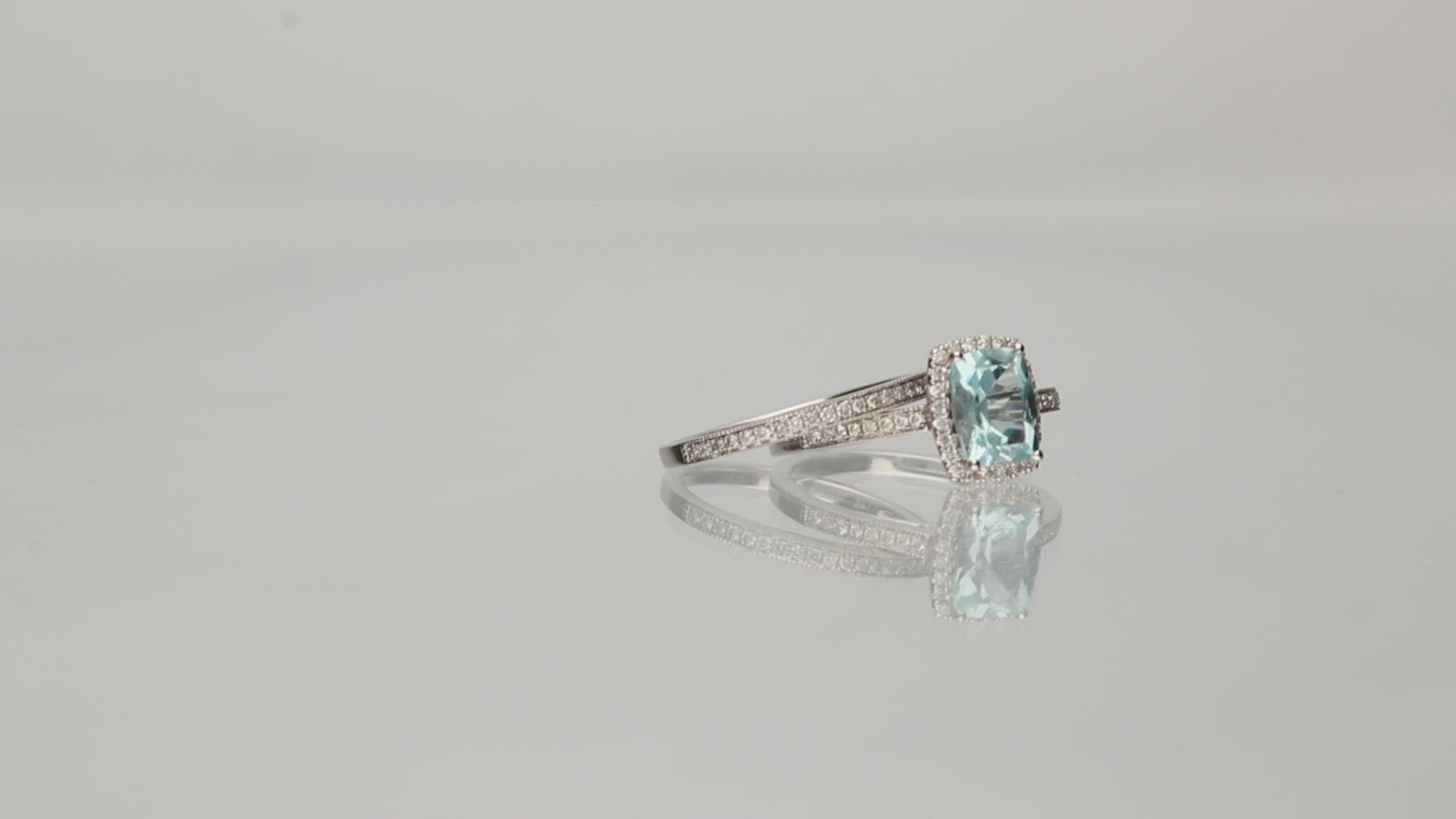 Selene 14K White Gold Cushion-Cut Brazilian Aquamarine Ring