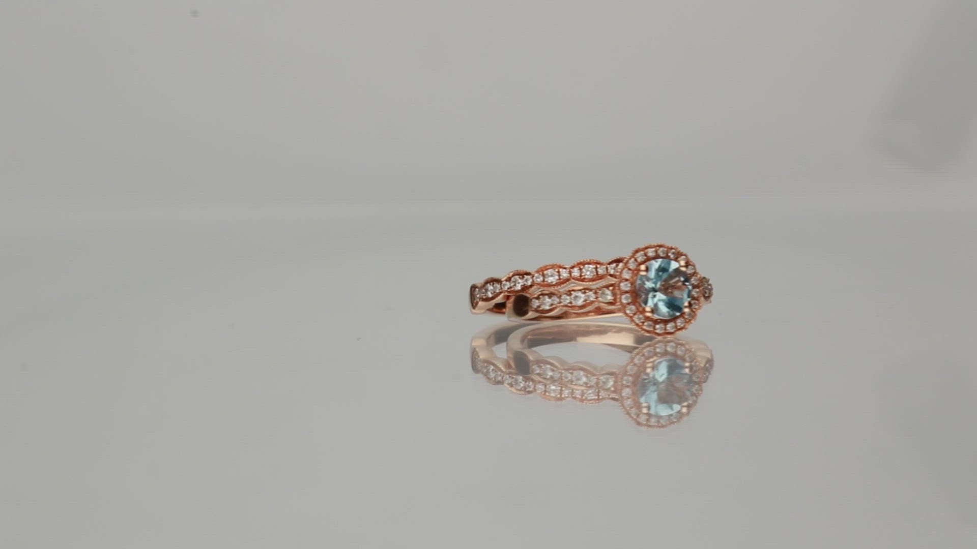 Audrey 14K Rose Gold Round Cut Brazilian Aquamarine Ring