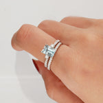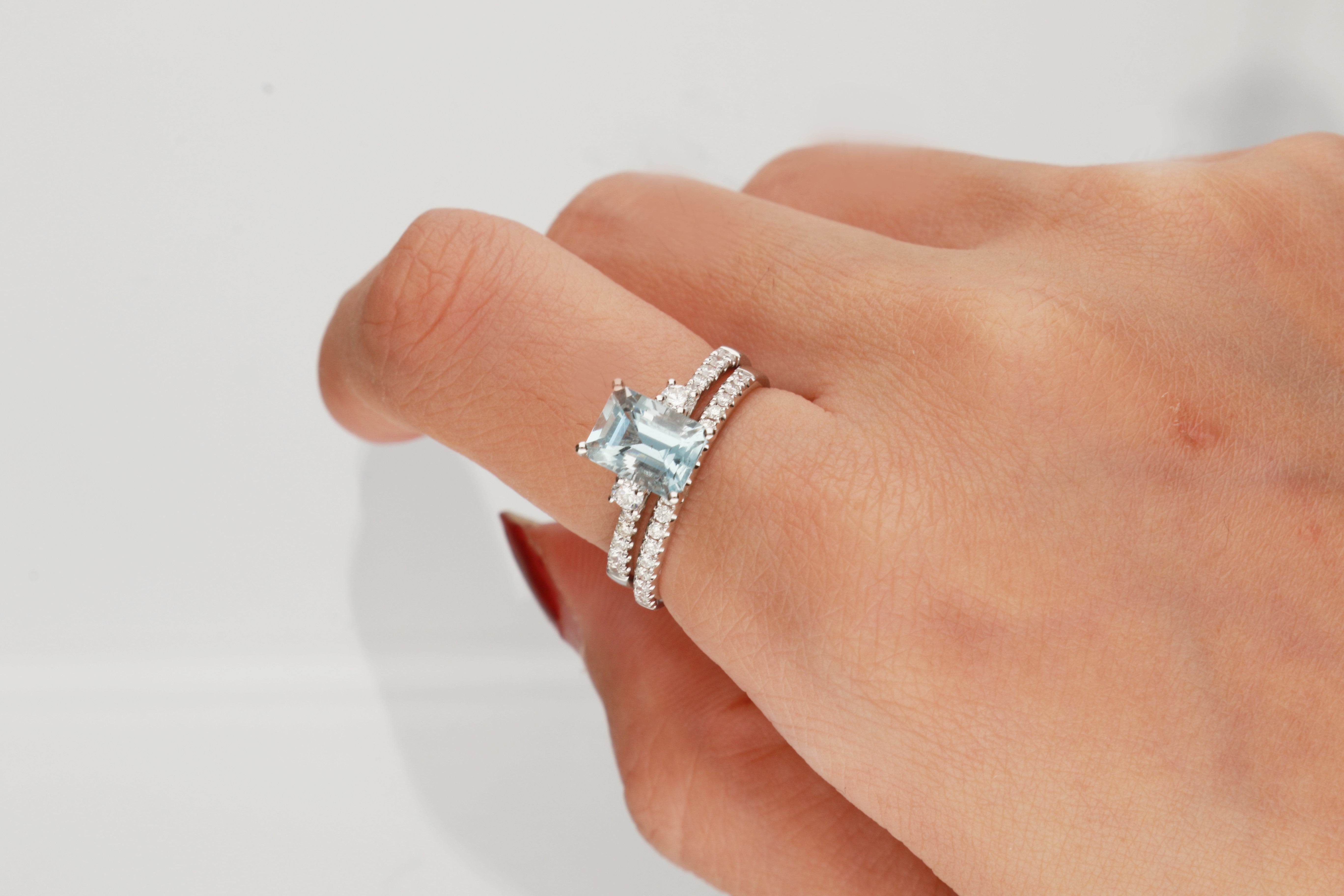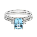 Stunning, timeless and classy eternity Engagement ring. Decorate yourself in luxury with this Gin & Grace ring. This ring is made up of Emerald-Cut Prong Setting Genuine Brazilian Aquamarine (1 pcs) 1.18 Carat and Round-Cut Prong Setting Diamond (31 pcs) 0.47 Carat accent stones for a lovely design. This ring is weight 3.18 grams. The ring is crafted of shining 14-karat White Gold and is completed by a highly polished finish.