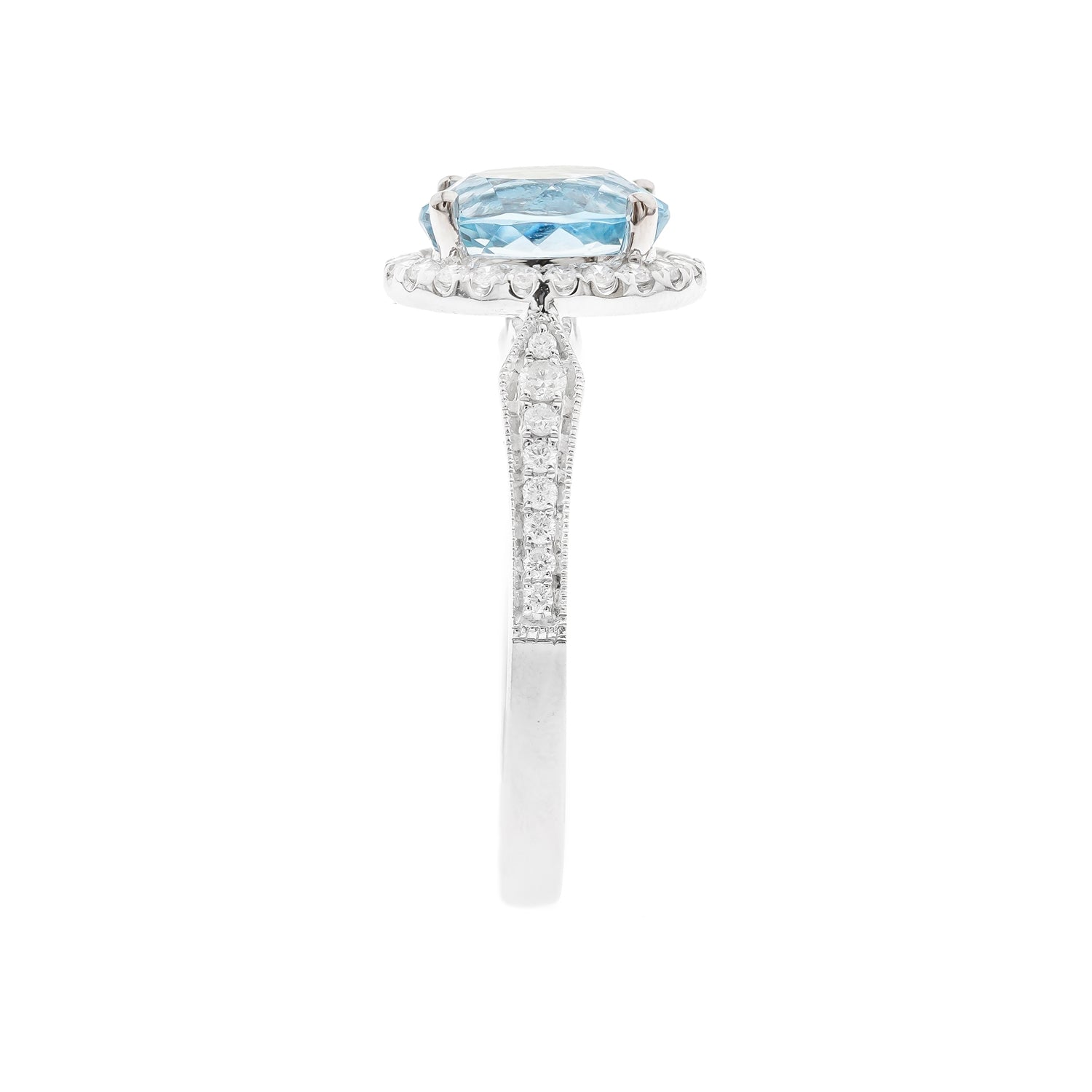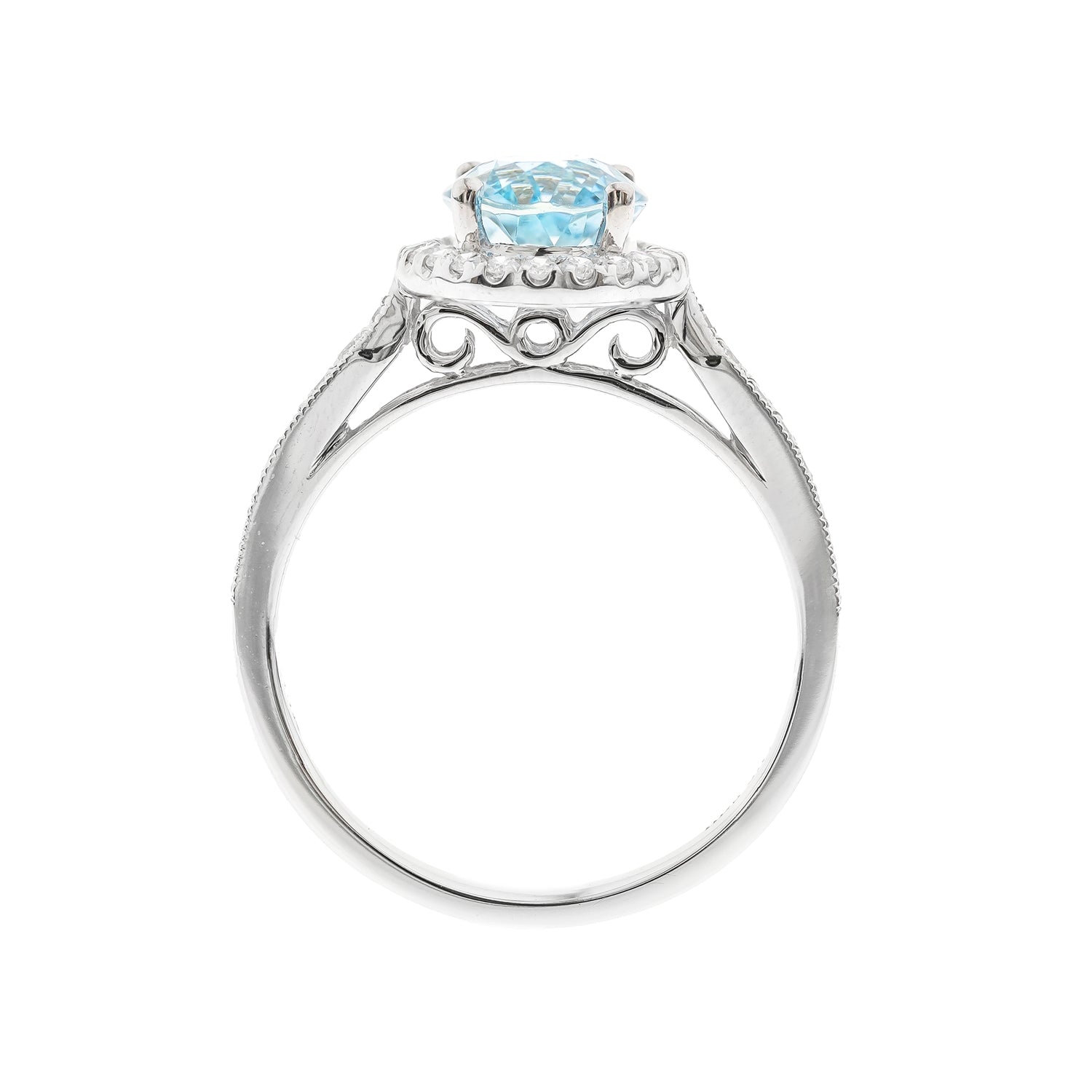 Stunning, timeless and classy eternity Unique Ring. Decorate yourself in luxury with this Gin & Grace Ring. The 14K White Gold jewelry boasts Oval-Shape Prong Setting Genuine Blue Zircon (1 pc) 1.71 Carat along with Natural Round cut white Diamond (38 Pcs) 0.30 Carat, accent stones for a lovely design. This Ring is weight 2.92 grams. Crafted with 14K White Gold, this delicate Ring is polished to a high finish shine.