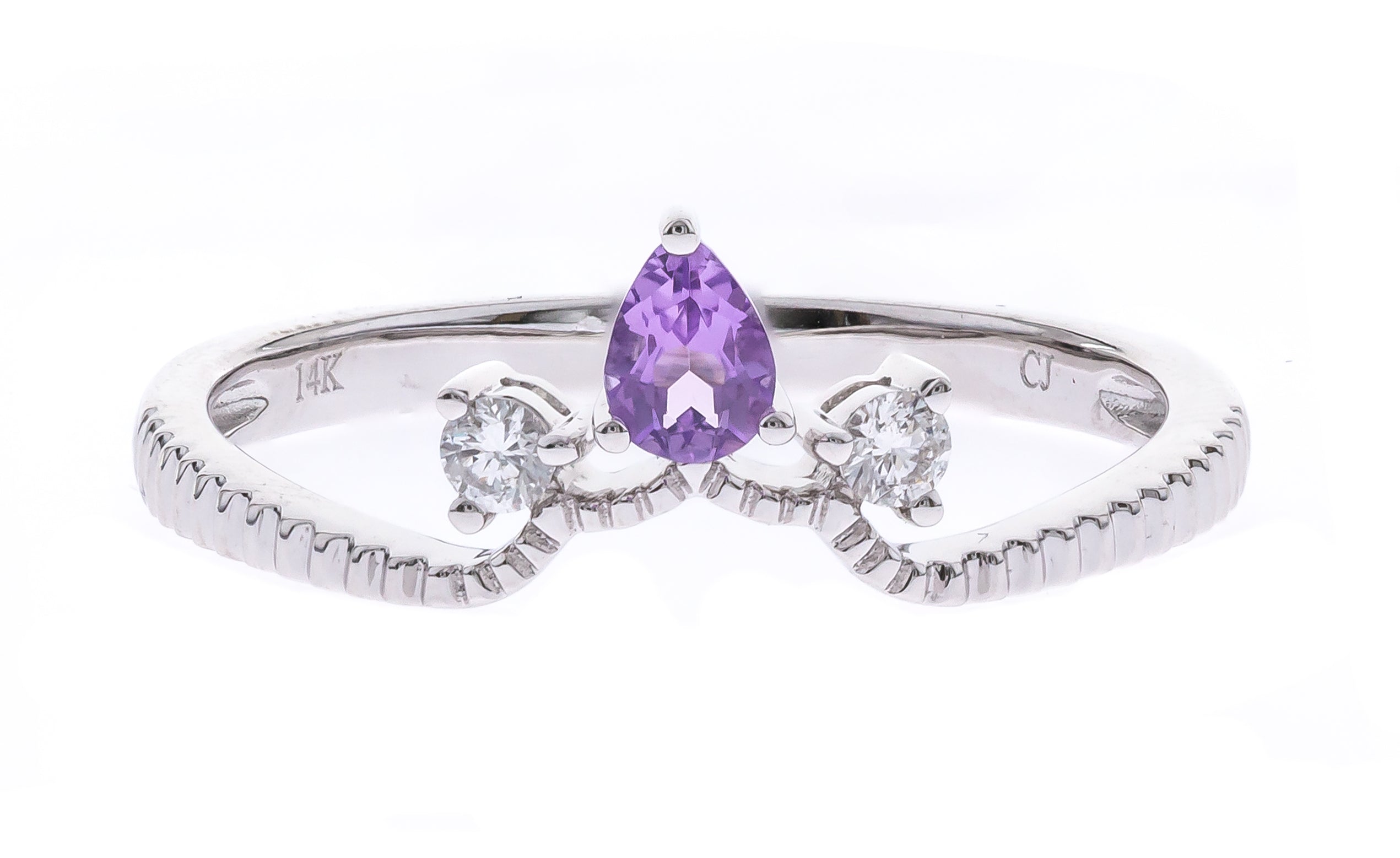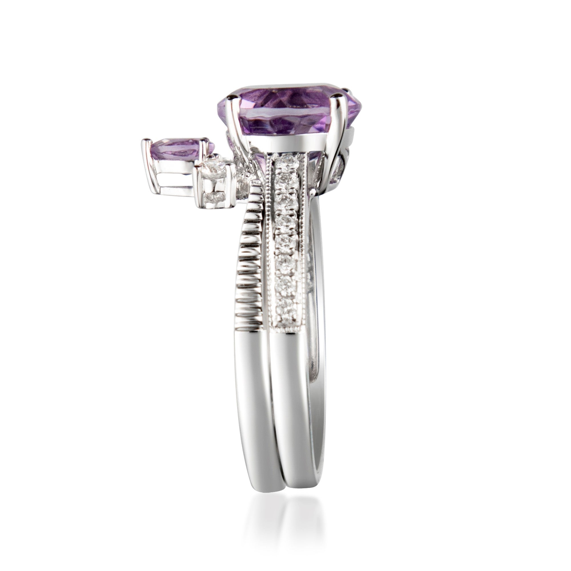 Stunning, timeless, and classy eternity Engagement ring. Decorate yourself in luxury with this Gin & Grace ring. This ring is made up of Round-Cut Prong Setting Genuine Brazilian Pink Amethyst (1pcs) 0.15 Carat, 3X4 Pear-Cut Prong Setting Genuine Light Brazilian Pink Amethyst (1pcs) 2.47 Carat and Round-Cut Prong Setting Natural Diamond (18 pcs) 0.25 Carat accent stones for a lovely design. This ring weighs 3.62 grams. The ring is crafted of shining 14-karat White Gold and is completed by a highly polished finish.