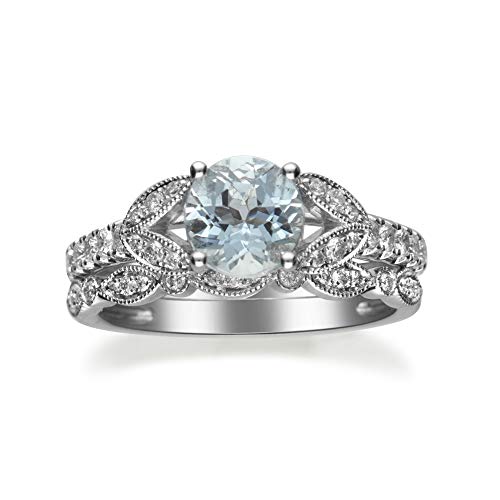 Stunning, timeless and classy eternity Engagement ring. Decorate yourself in luxury with this Gin & Grace ring. This ring is made up of Round-Cut Prong Setting Genuine Brazilian Aquamarine (1pcs) 0.94 Carat and Round-Cut Prong Setting Diamond (41 pcs) 0.38Carat accent stones for a lovely design. This ring is weight 4.18 grams. The ring is crafted of shining 14-karat White Gold and is completed by a highly polished finish.