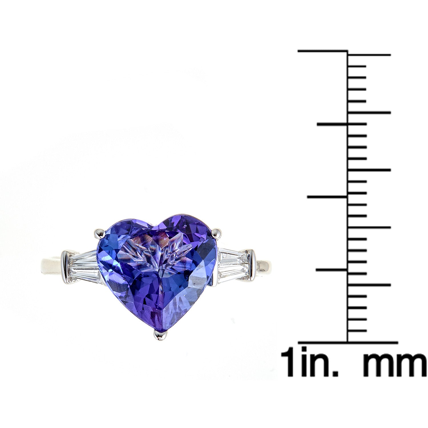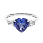 Decorate yourself in elegance with this Ring is crafted from 14-karat White Gold by Gin & Grace.This Ring is made up of 8.5 mm Heart Shape Tanzanian Tanzanite(1 pcs) 2.44 carat and Baguette-cut White Diamond (4 Pcs) 0.15 Carat. This Ring is weight 1.93 grams. This delicate Ring is polished to a high finish shine.
