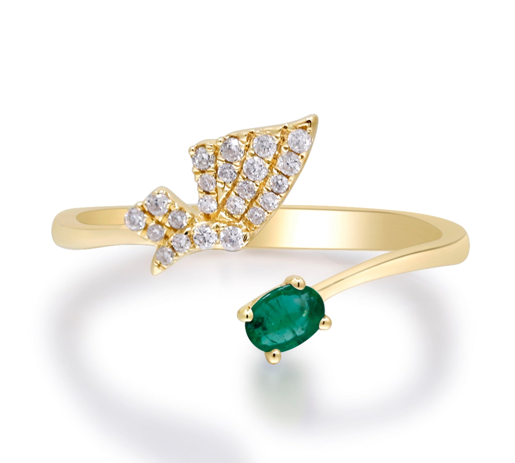 Elsie 14K Yellow Gold Round-Cut Emerald Ring