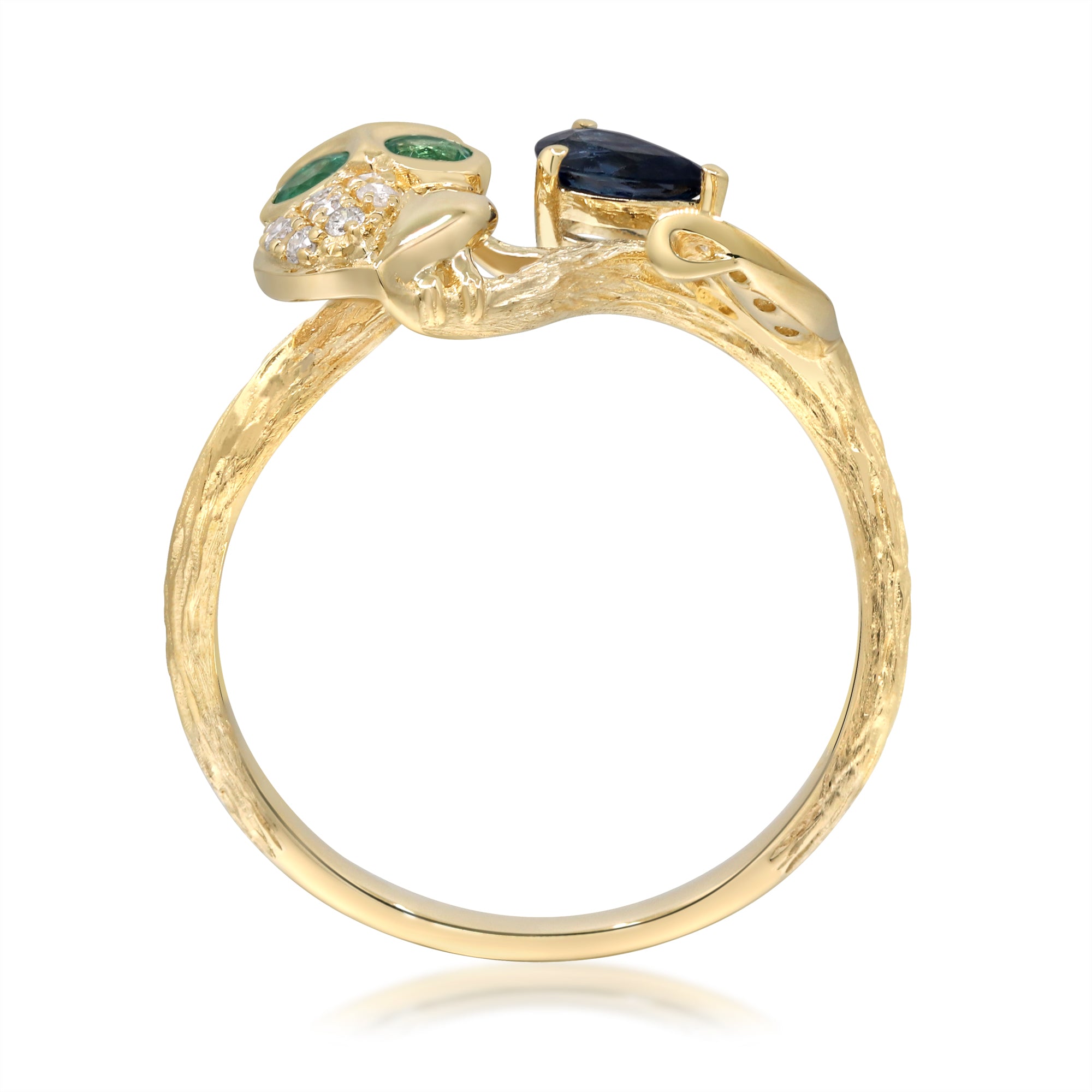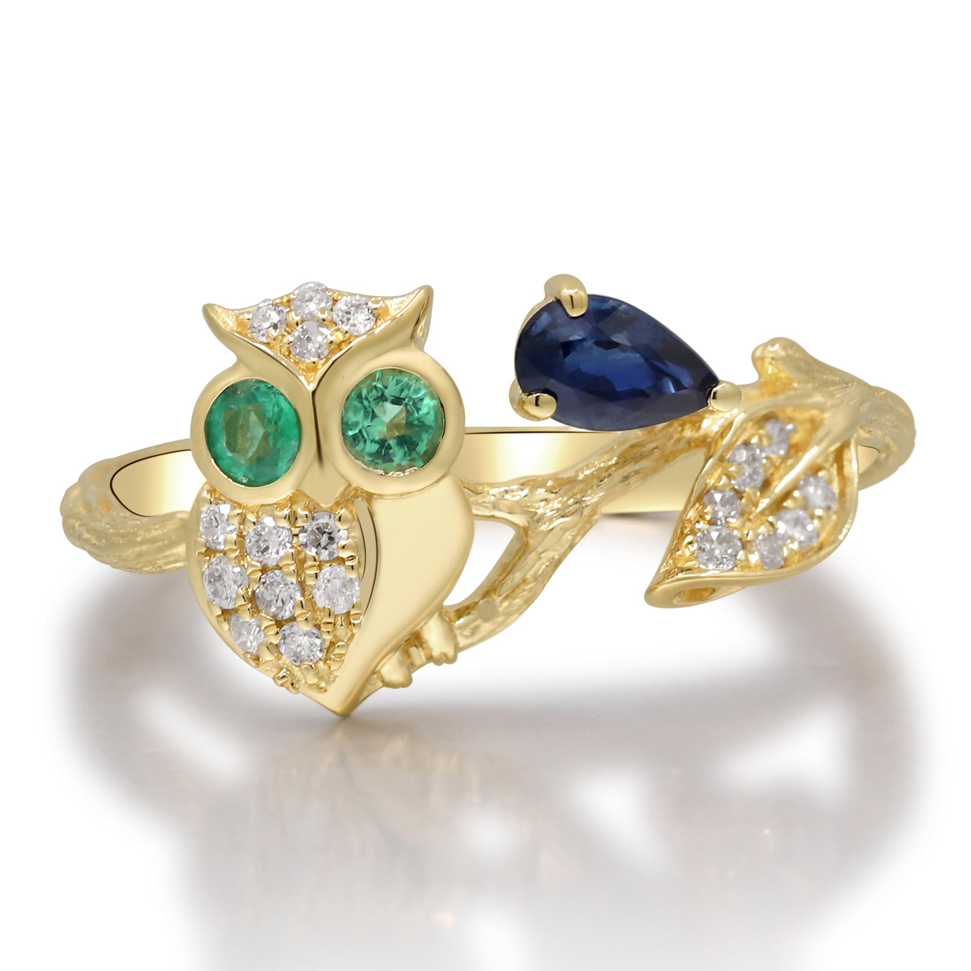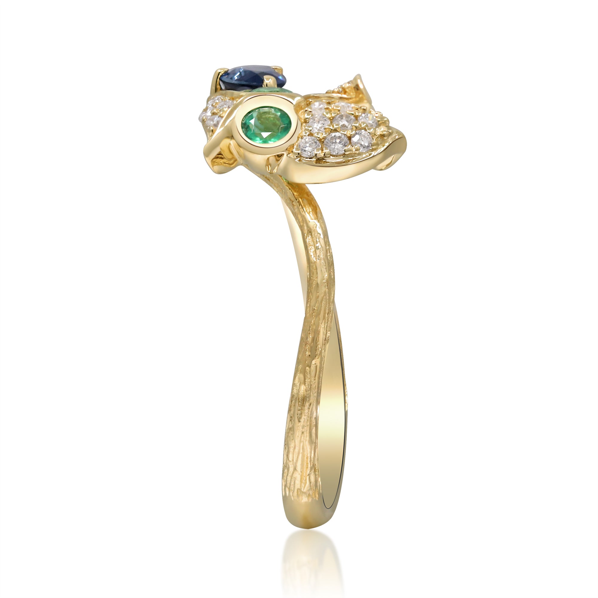 Stunning, timeless and classy eternity Unique Ring. Decorate yourself in luxury with this Gin & Grace Ring. The 14K Yellow Gold jewelry boasts Round-Cut Prong Setting Natural Emerald (2 pc) 0.13 Carat, and Blue Sapphire (1 pc) 0.23 Carat, along with Natural Round cut white Diamond (19 Pcs) 0.10 Carat, accent stones for a lovely design. This Ring is weight 2.54 grams. Crafted with 14K Yellow Gold, this delicate Ring is polished to a high finish shine.