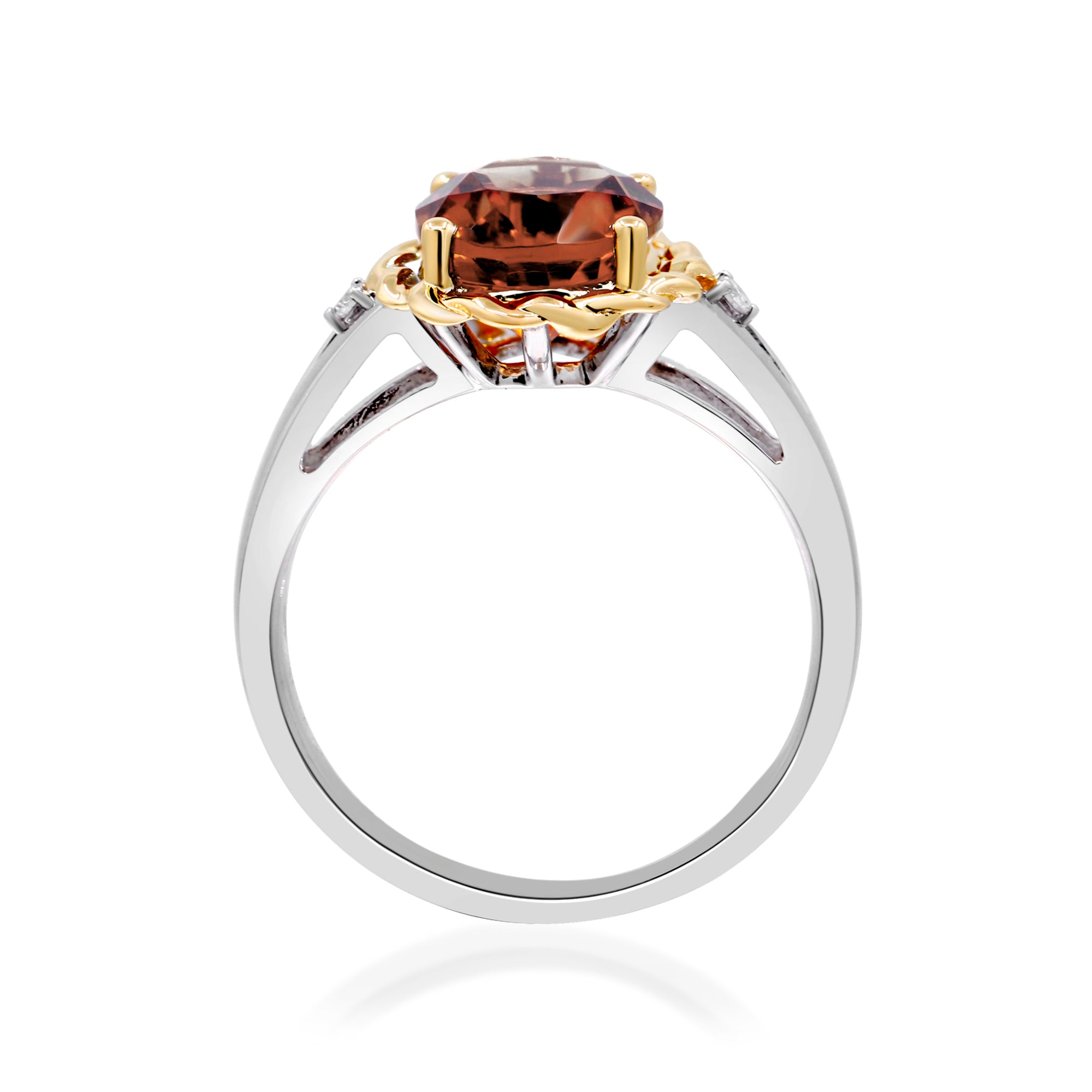 Decorate yourself in elegance with this Ring is crafted from 10K-925 Two-tone Gold by Gin & Grace. This Ring is made up of Brazilian Citrine Oval-cut (1 pcs) 2.64 carat and Round-cut white diamond (2 Pcs) 0.03 carat. This Ring is weight 2.83 grams. This delicate Ring is polished to a high finish shine.
