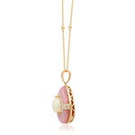 Decorate yourself in elegance with this Pendant is crafted from 14K Yellow Gold by Gin & Grace. This Pendant is made up of Pear-cut Ethiopian Opal (1 pcs) 0.96 carat, Pink Opal free mix (2 Pcs) 3.86 carat and round-cut White Diamond (35 Pcs) 0.33 Carat. This Pendant is weight 5.35 grams. This delicate Pendant is polished to a high finish shine.