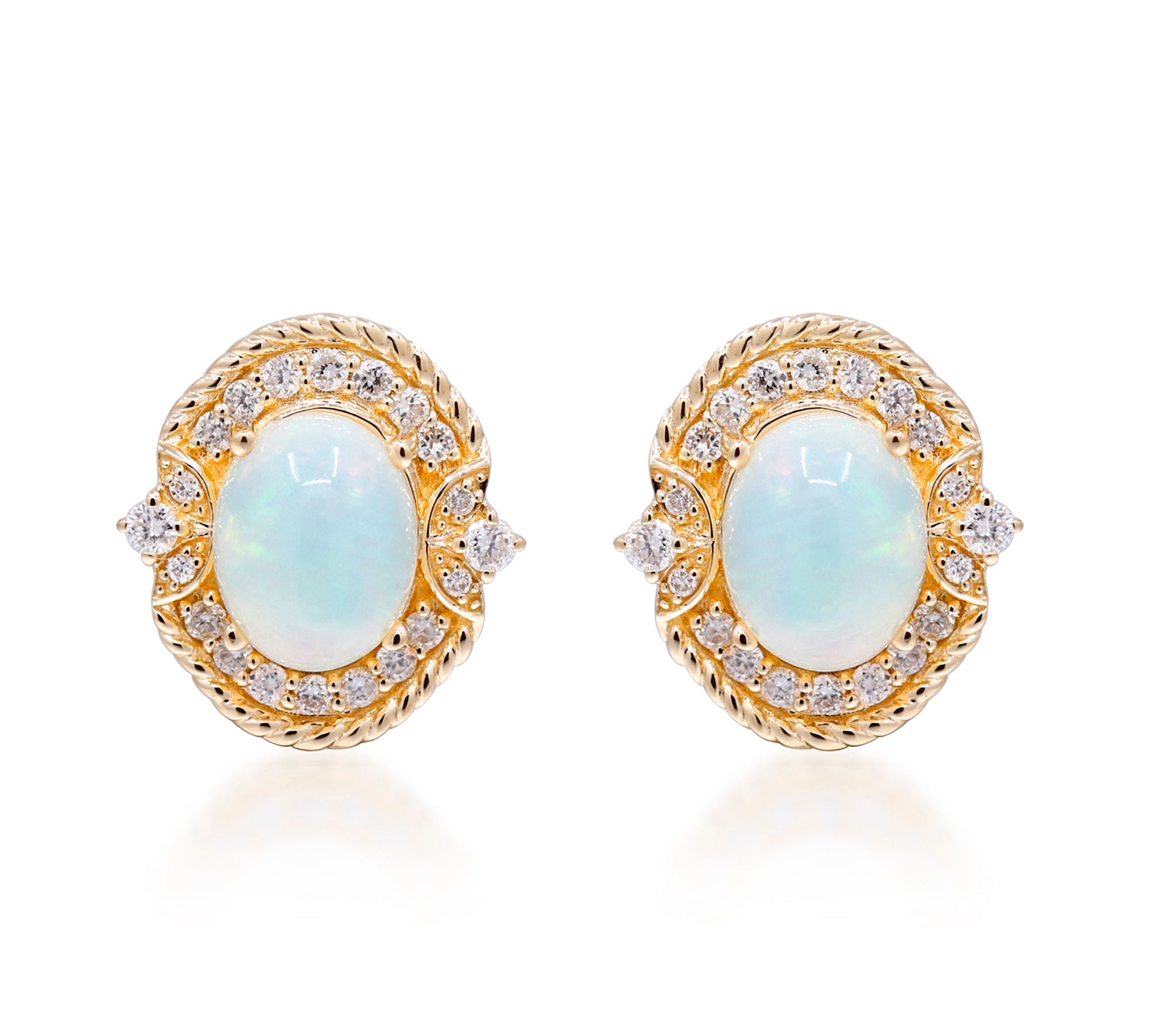 Allison 10K Yellow Gold Oval Cab Natural African Opal Earrings