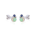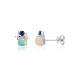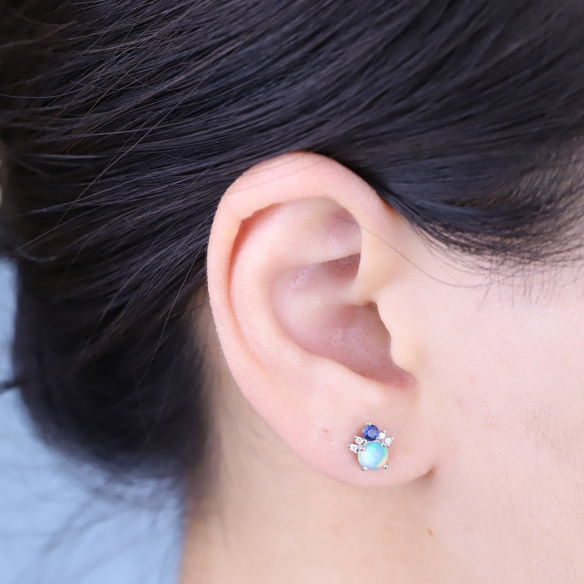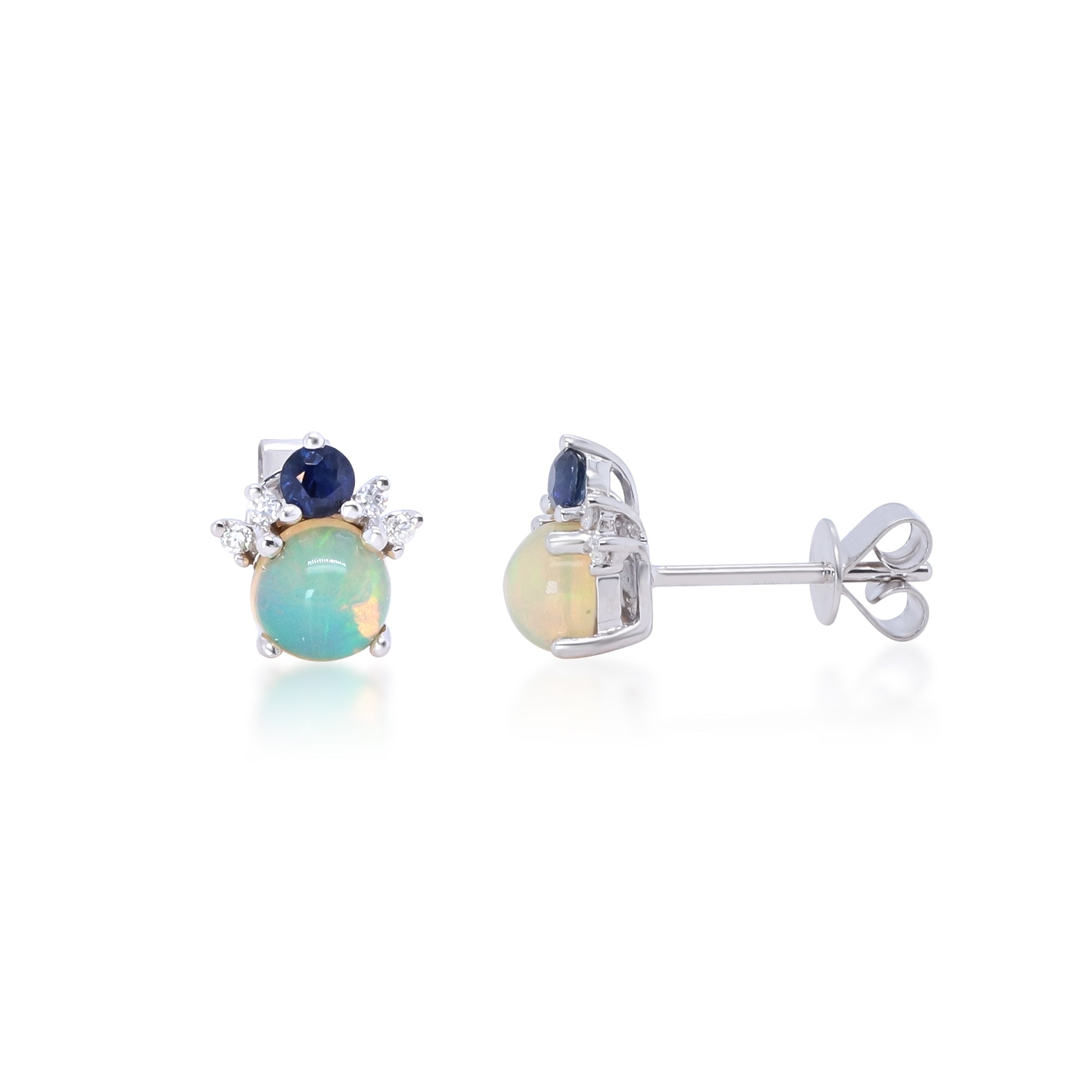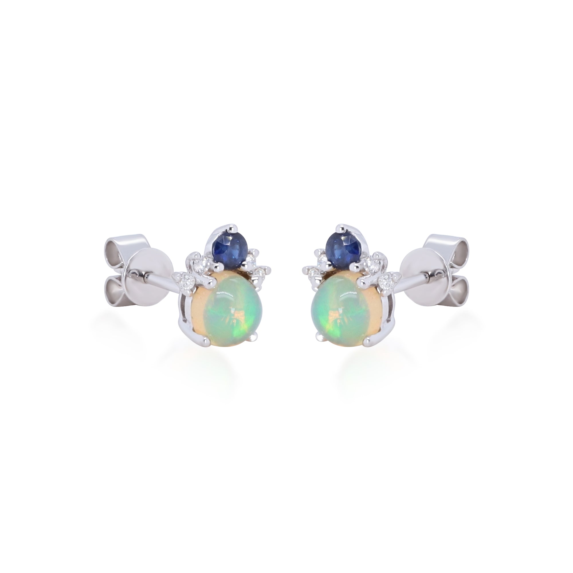 Decorate yourself in elegance with this Earring is crafted from 10-karat White Gold by Gin & Grace Earring. This Earring is made up of 5.0 mm Round-Cut African Opal (2Pcs) 0.74 Carat, Round-cut Blue Sapphire (2Pcs) 0.18 Carat and Round-cut White Diamond (8 Pcs) 0.06 Carat. This Earring is weight 1.23 grams. This delicate Earring is polished to a high finish shine.