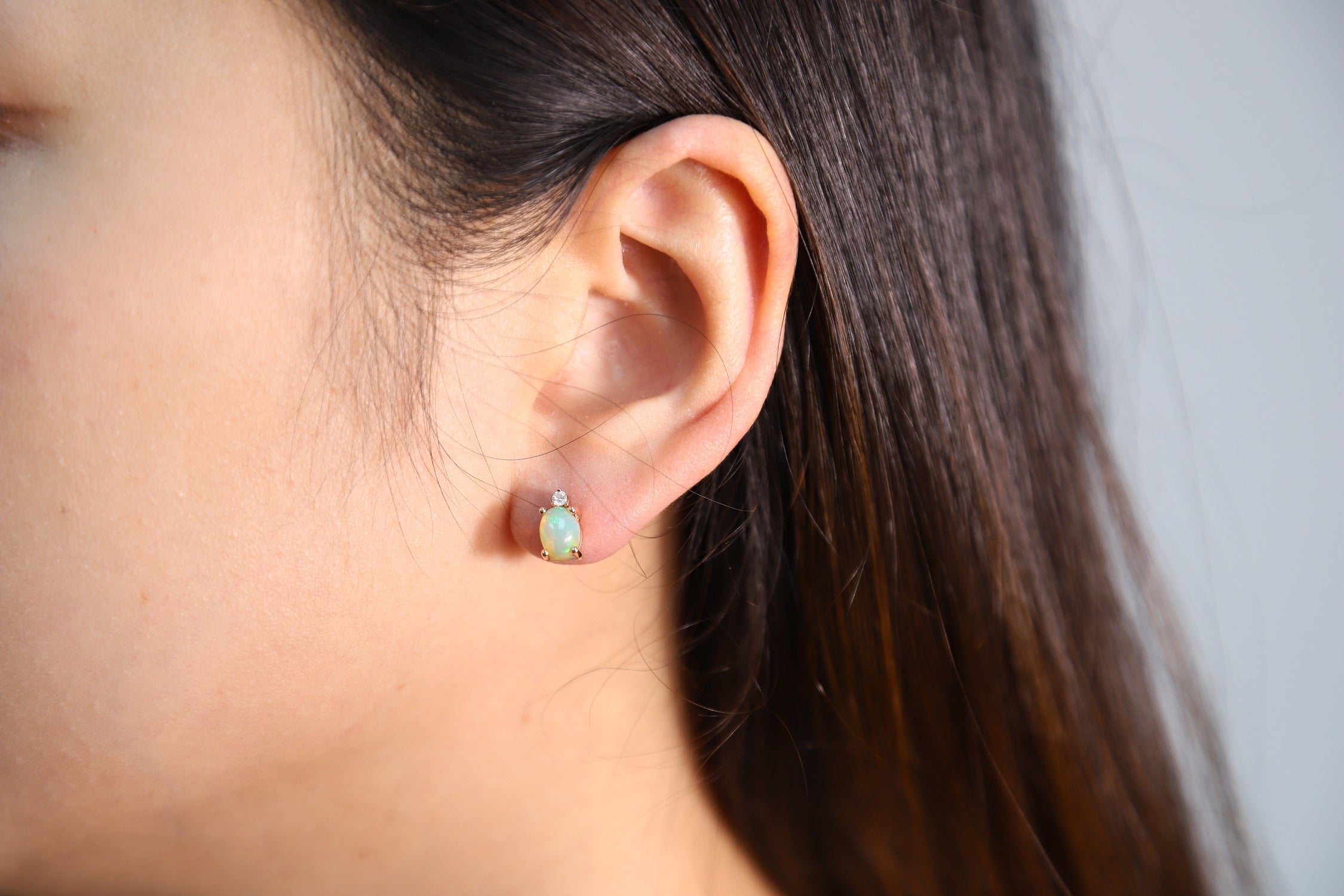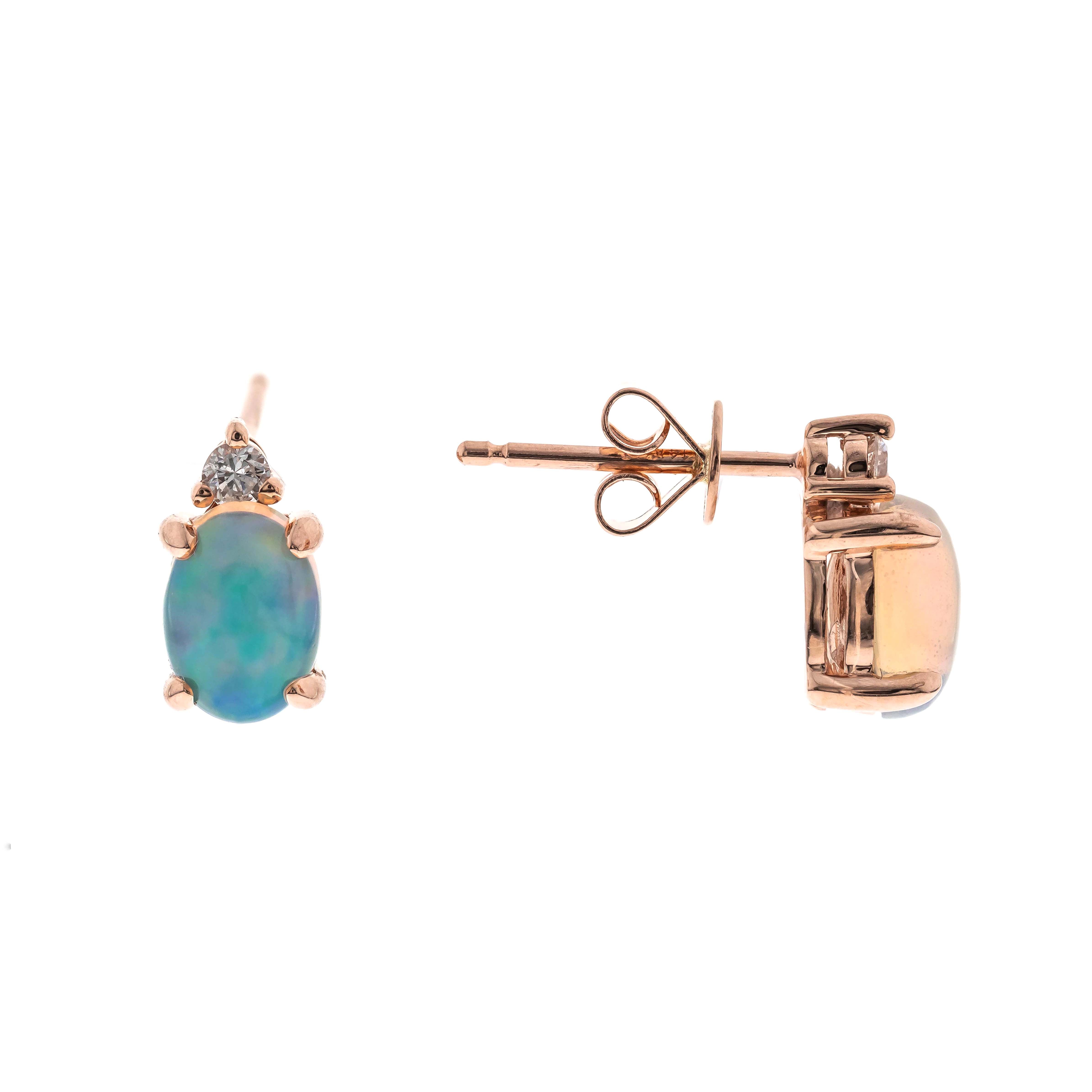 Decorate yourself in elegance with this Earring is crafted from 10K Rose Gold by Gin & Grace Earring. This Earring is made up of 5X7 mm Oval-Cut prong setting white color Natural African Opal (2 pcs) 1.16 Carat and Round-Cut prong setting Diamond (2 pcs) 0.08 Carat. This Earring is weight 1.54 grams. This delicate Earring is polished to a high finish shine. Simple lever back clasps keep these earrings securely fastened.