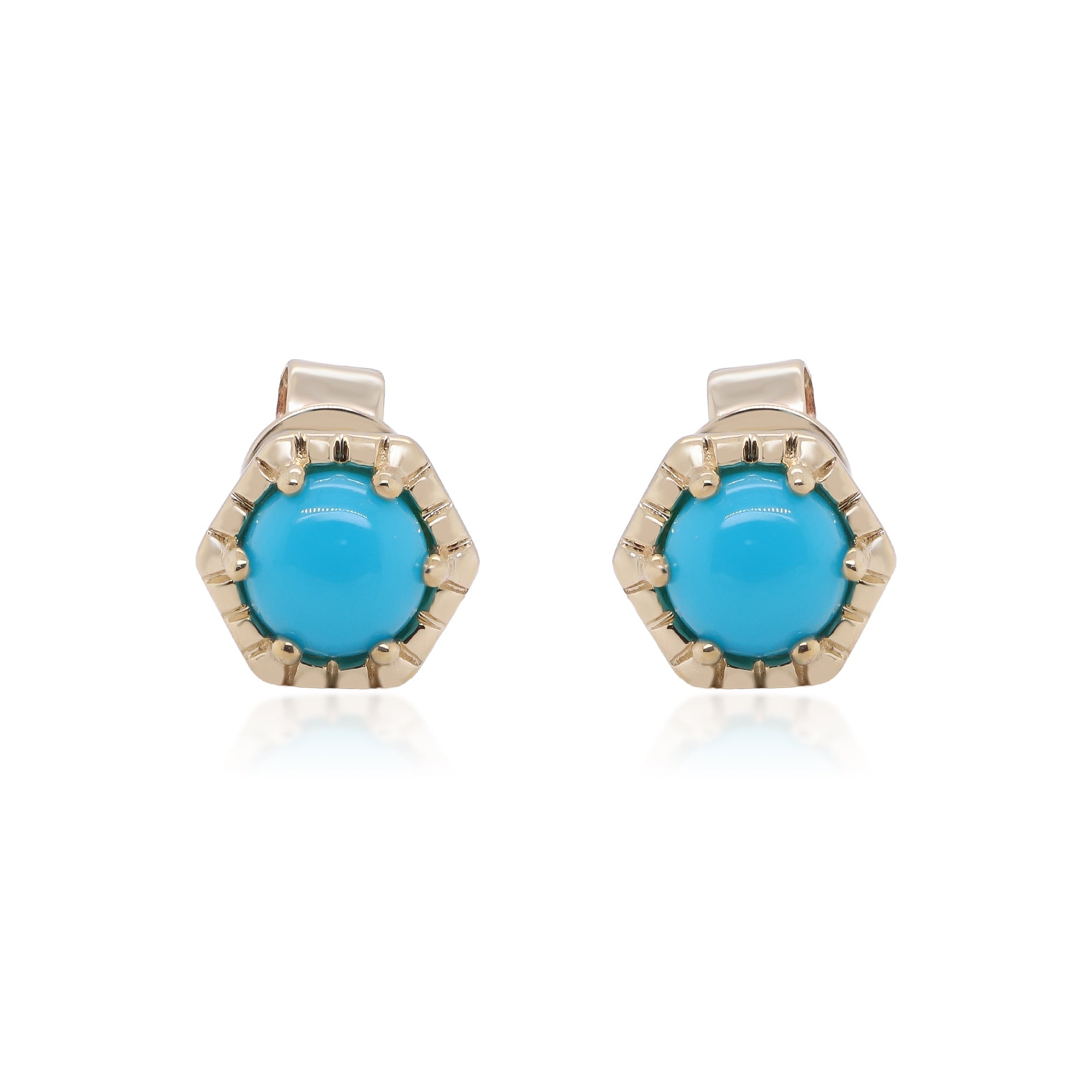 Decorate yourself in elegance with this Earring is crafted from 10-karat Yellow Gold by Gin & Grace. This Earring is made up of Round-Cut Turquoise (2 Pcs) 0.54 carat. This Earring is weight 1.16 grams. This delicate Earring is polished to a high finish shine.