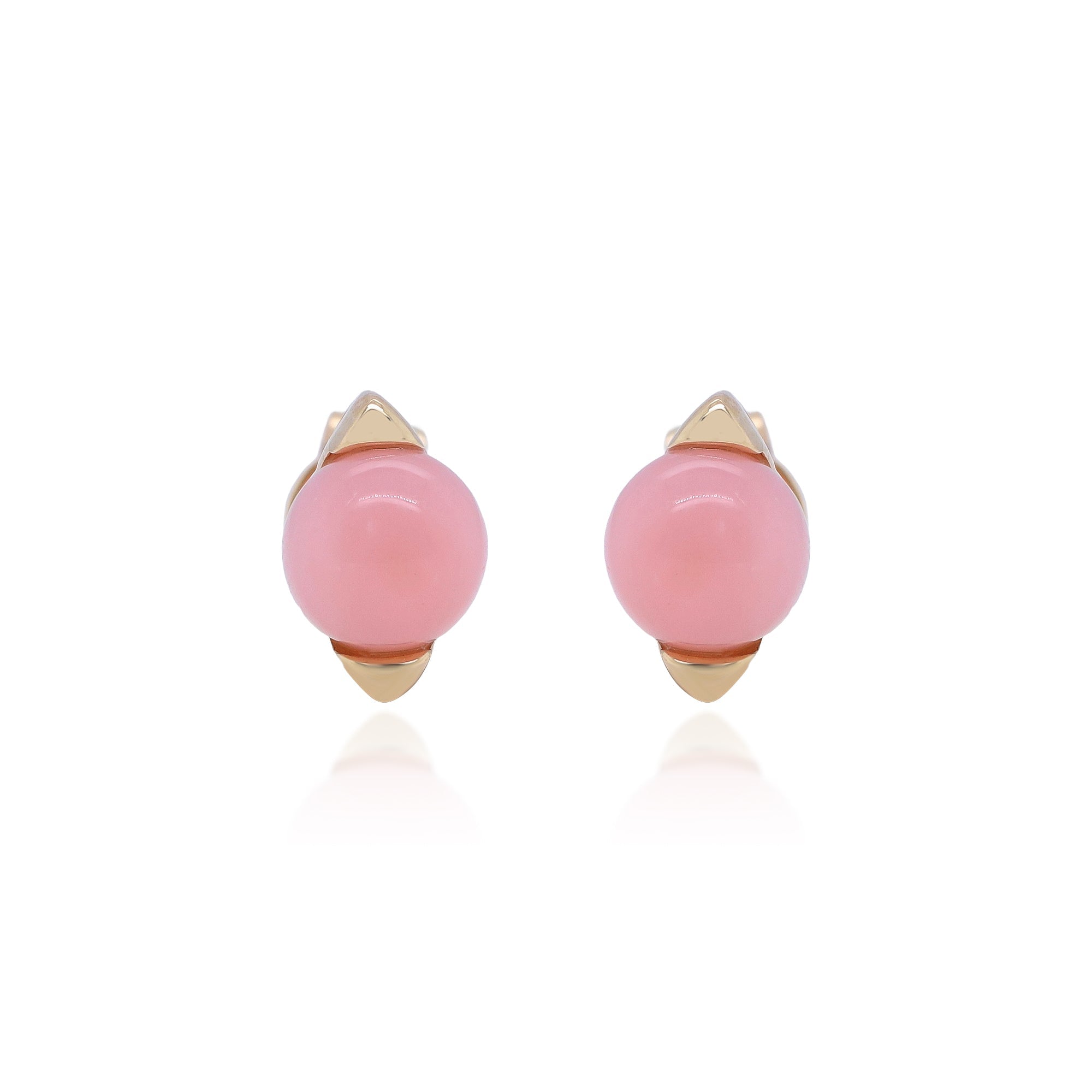 Decorate yourself in elegance with this Earring is crafted from 10-karat Yellow Gold by Gin & Grace. This Earring is made up of Round-cut Peruvian Pink Opal (2 Pcs) 1.01 carat. This Earring is weight 0.86 grams. This delicate Earring is polished to a high finish shine.