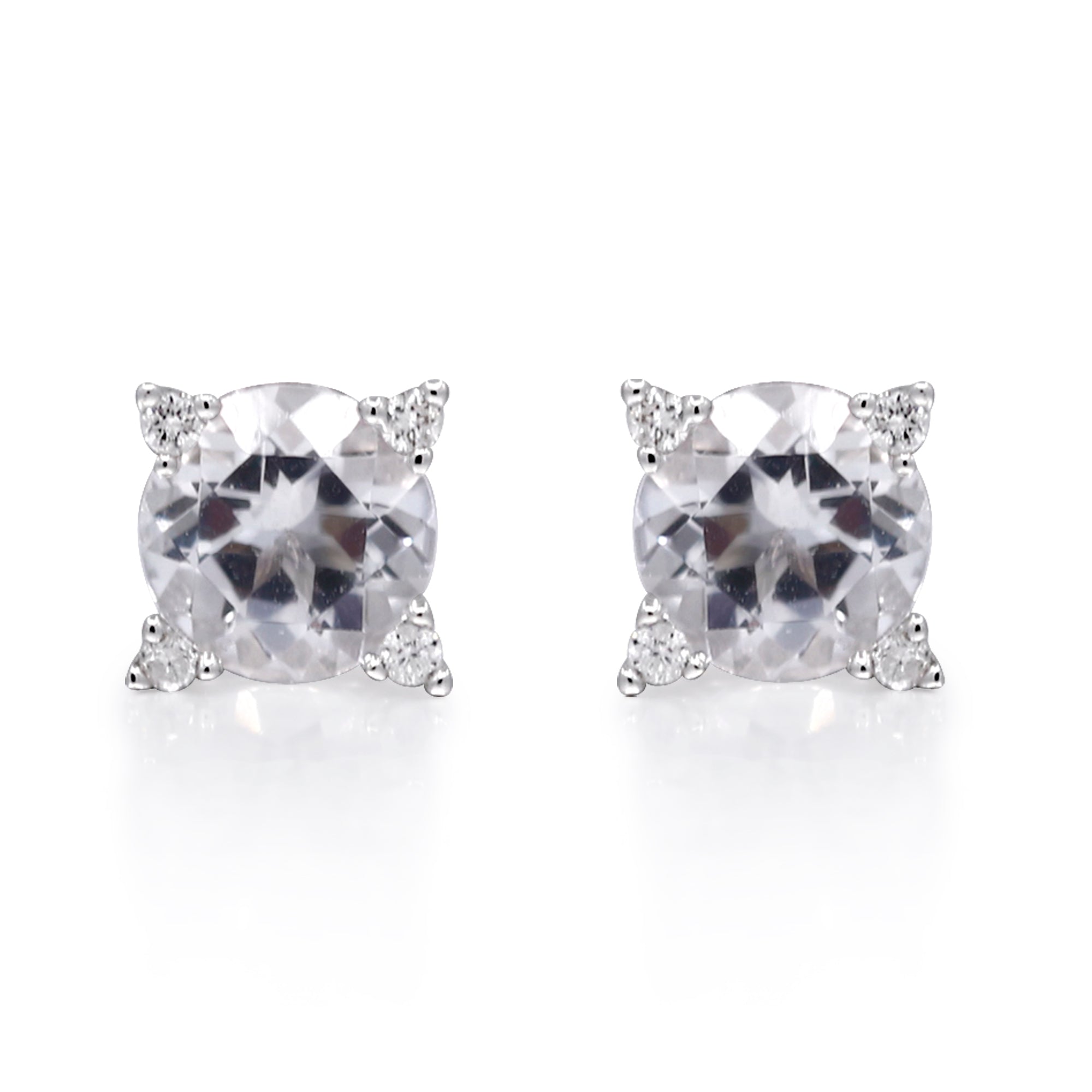 Decorate yourself in elegance with this Earring is crafted from 10K White Gold by Gin & Grace Earring. The jewelry boasts 5MM Round-Cut prong setting White Topaz (2 pcs) 1.91 Carat and Round-Cut prong setting Diamond (8 pcs) 0.04 Carat. This Earring is weight 0.92 grams. This delicate Earring is polished to a high finish shine. Simple Stud clasps keep these earrings securely fastened.