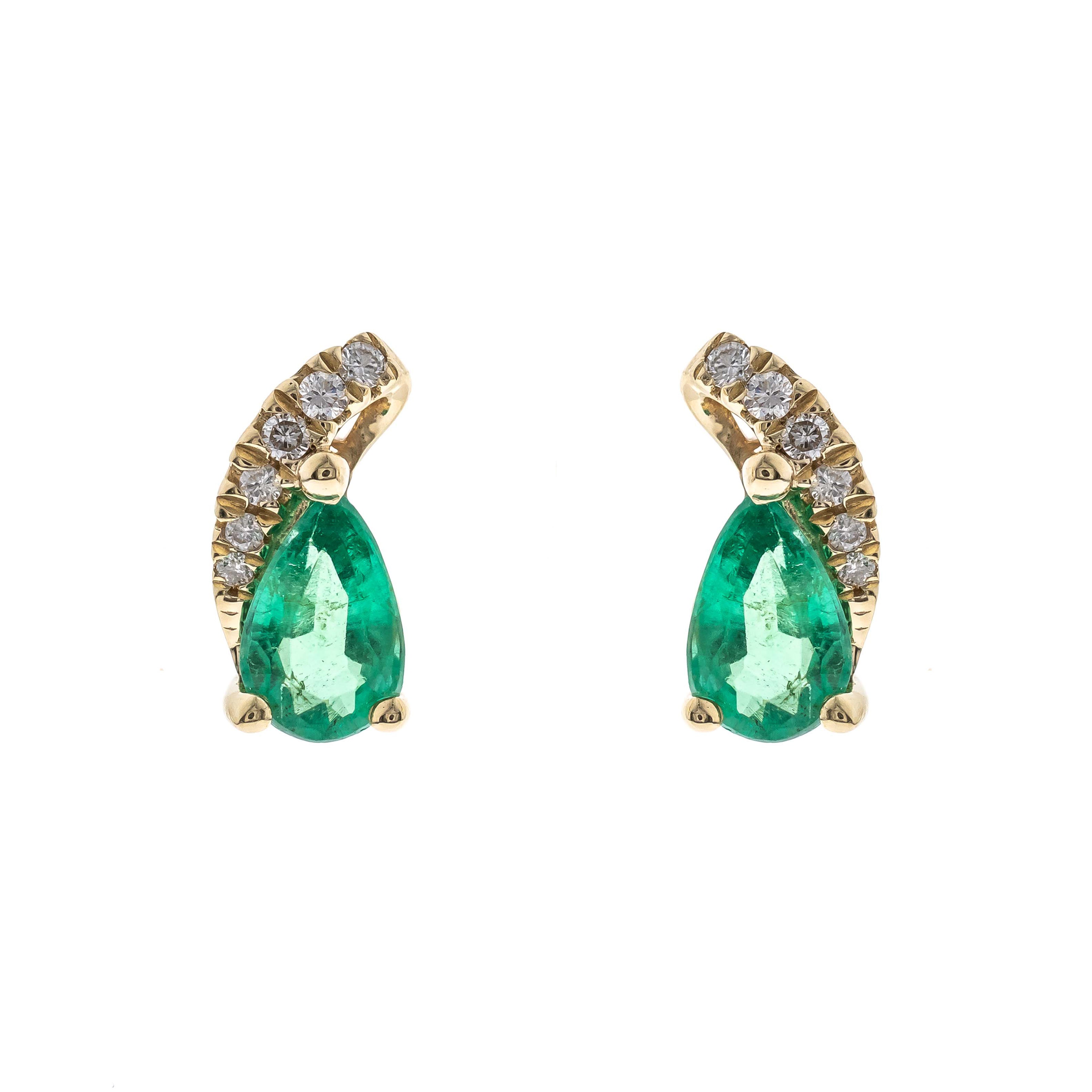 Decorate yourself in elegance with this Earring is crafted from 10K Yellow Gold by Gin & Grace. This Earring is made up of Emerald Pear-Cut (2 pcs) 0.69 carat, Round-cut White Diamond (12 Pcs) 0.06 Carat. This Earring is weight 0.93 grams. This delicate Earring is polished to a high finish shine.