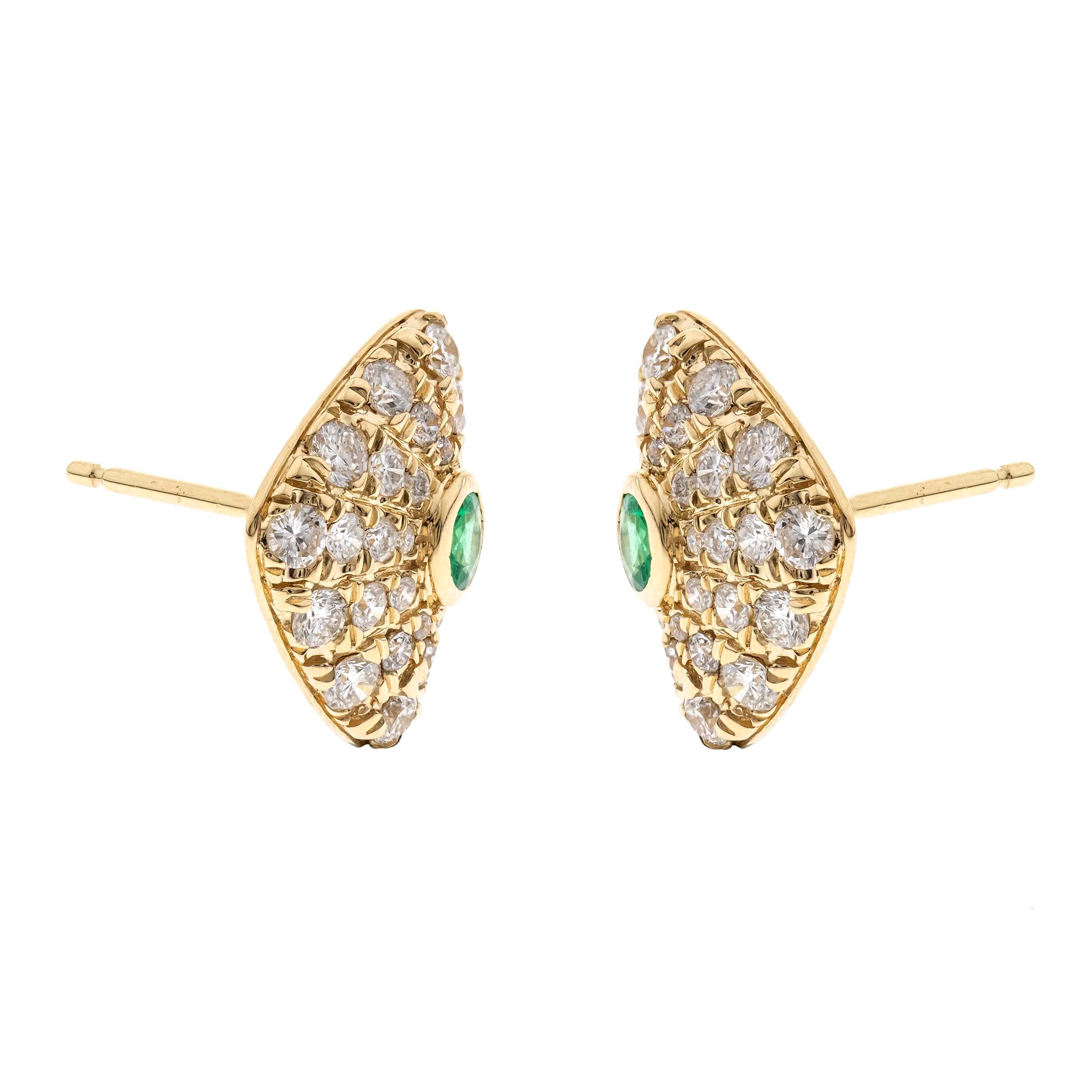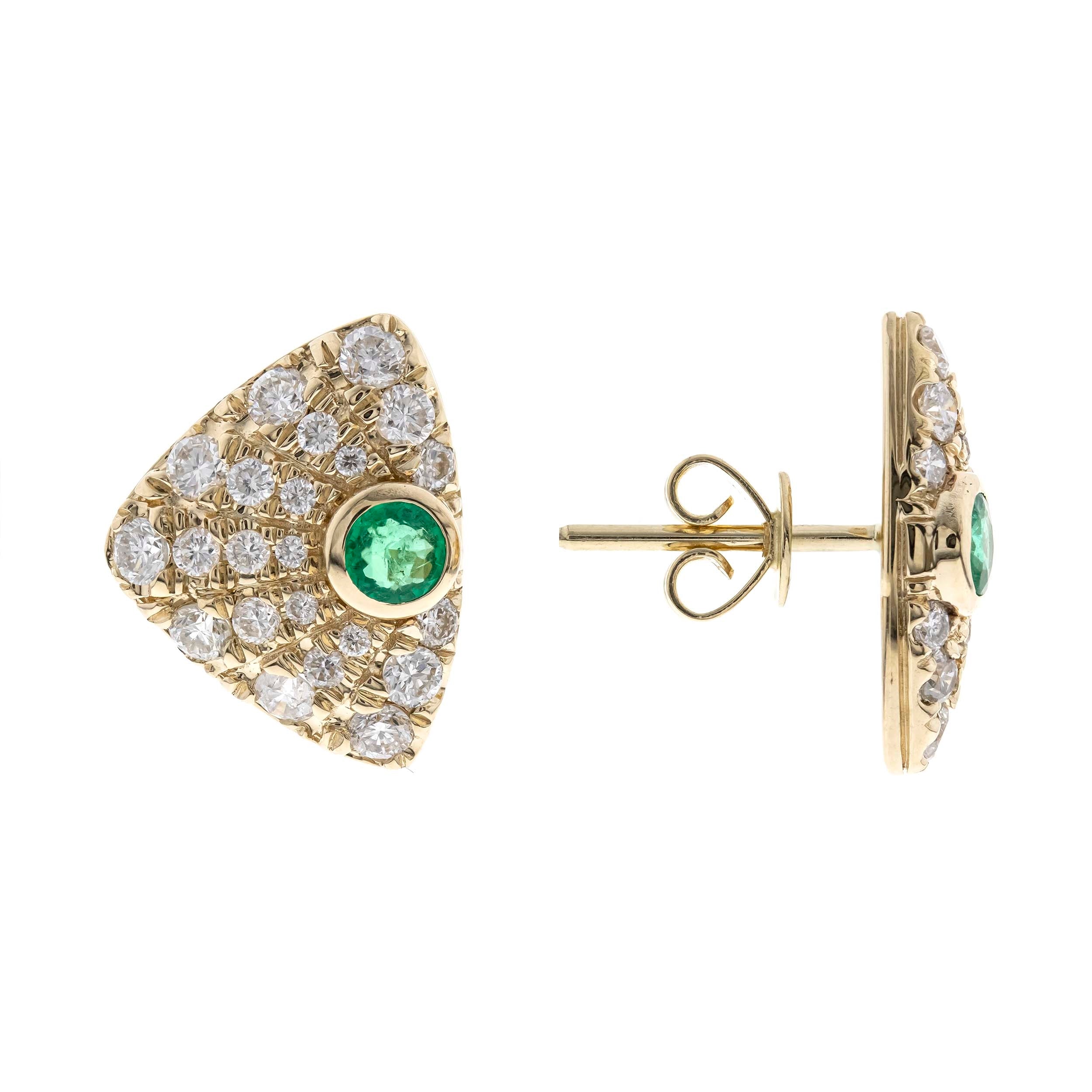 Decorate yourself in elegance with this Earring is crafted from 14-karat Yellow Gold by Gin & Grace. This Earring is made up of Round-Cut Zambian Emerald (2 pcs) 0.22 carat and Round-cut White Diamond (44 Pcs) 0.77 Carat. This Earring is weight 2.39 grams. This delicate Earring is polished to a high finish shine.