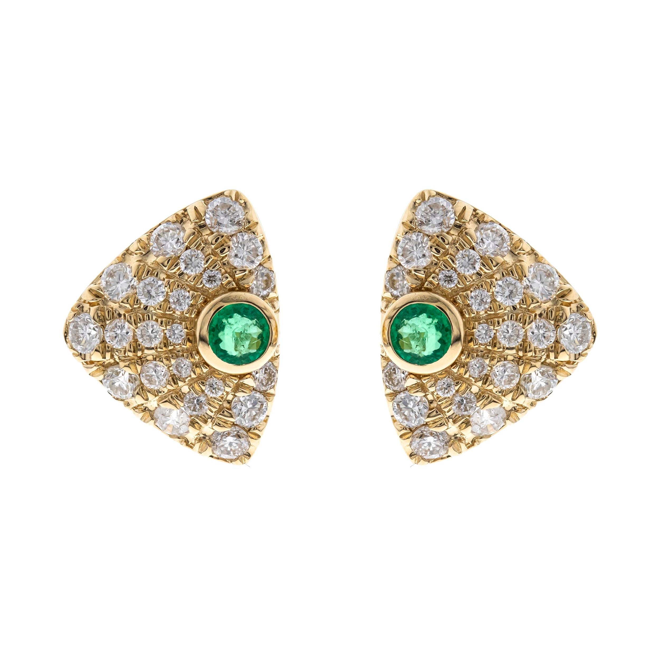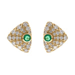 Decorate yourself in elegance with this Earring is crafted from 14-karat Yellow Gold by Gin & Grace. This Earring is made up of Round-Cut Zambian Emerald (2 pcs) 0.22 carat and Round-cut White Diamond (44 Pcs) 0.77 Carat. This Earring is weight 2.39 grams. This delicate Earring is polished to a high finish shine.